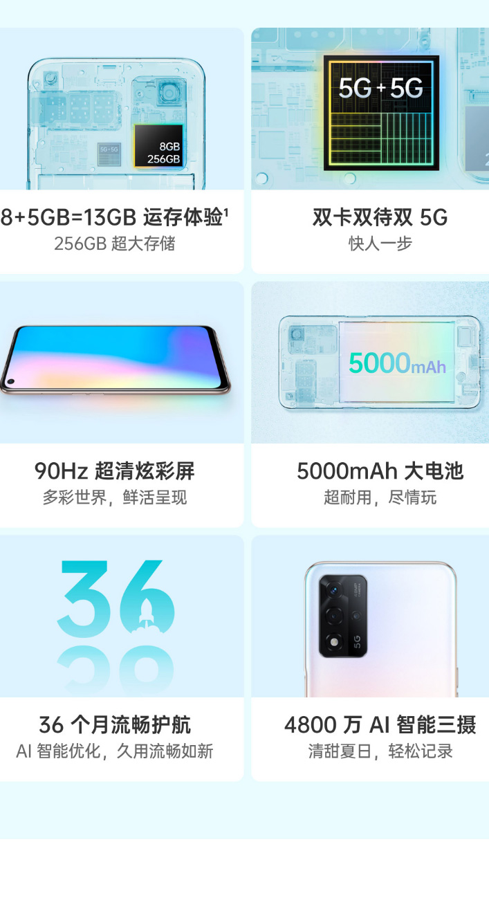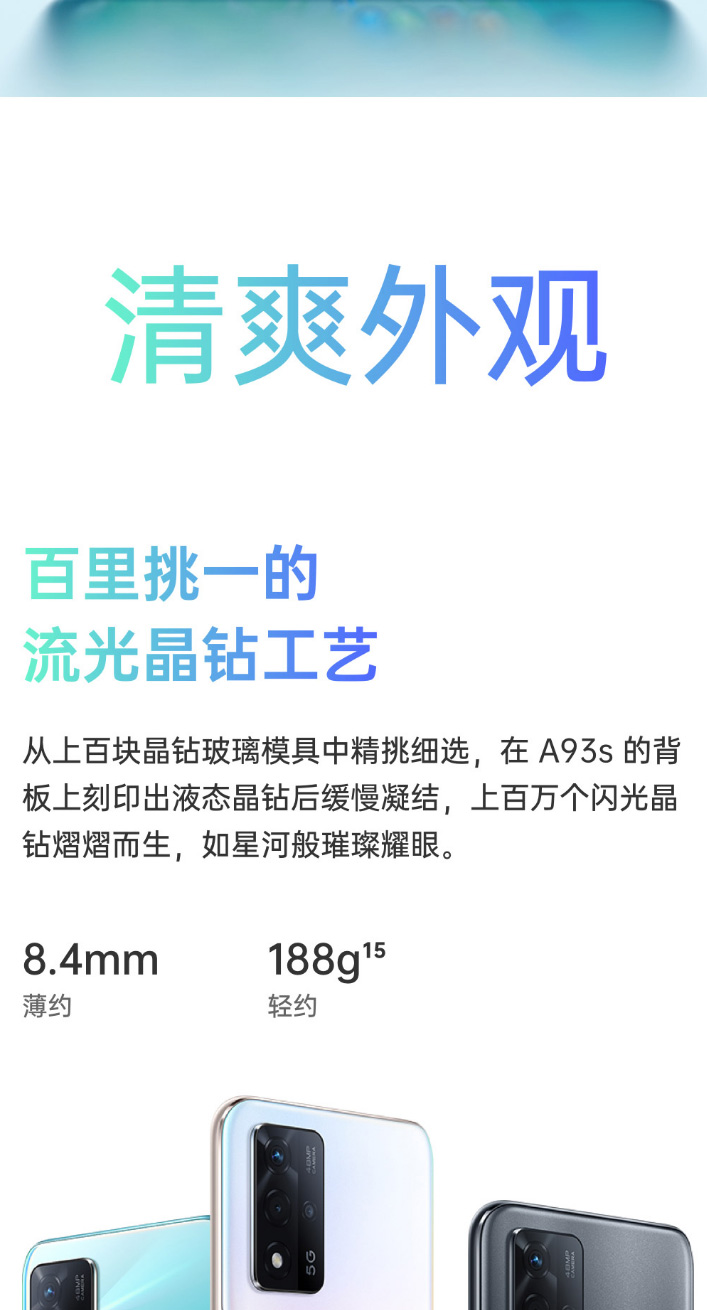 OPPO A93s 8+256GB 双模5G 超大存储 5000mAh大电池 18W双芯快充 90Hz高刷屏 全面屏手机