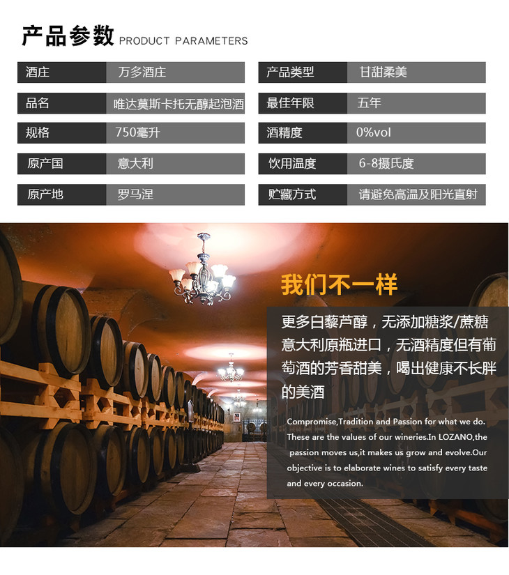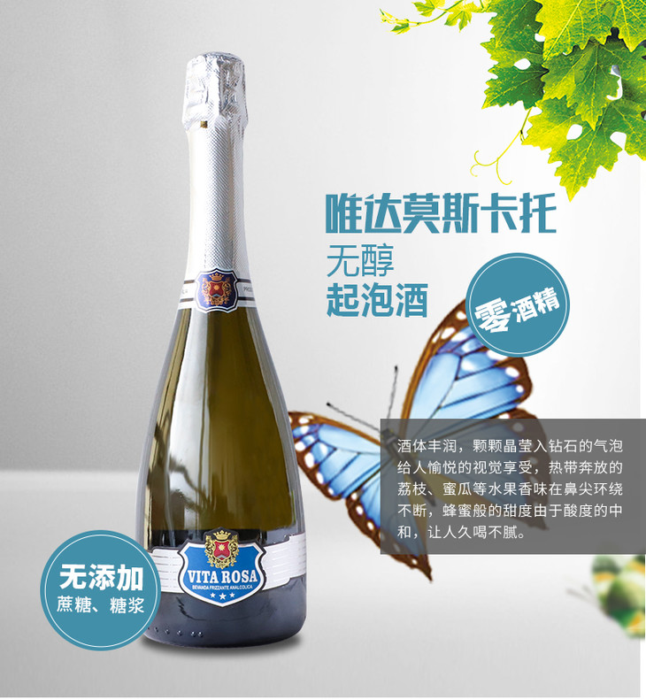 唯达莫斯卡托起泡酒无醇零酒精天然酿制[福利品]