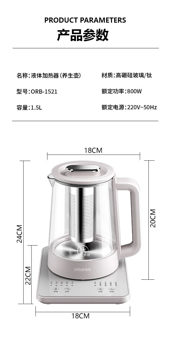 【多样屋专柜】欧锐铂 元气满满-底座纯钛养生壶1.5L