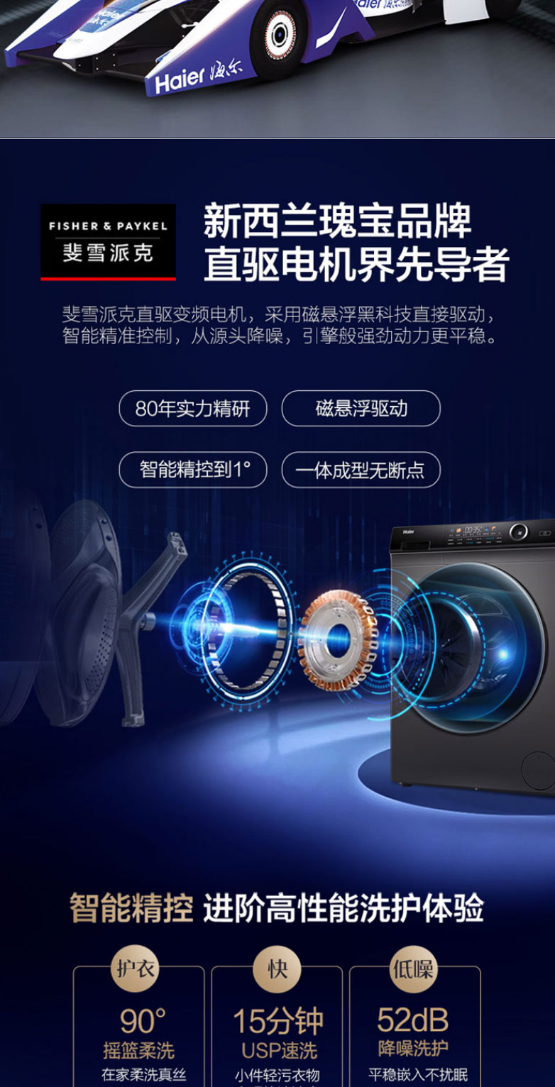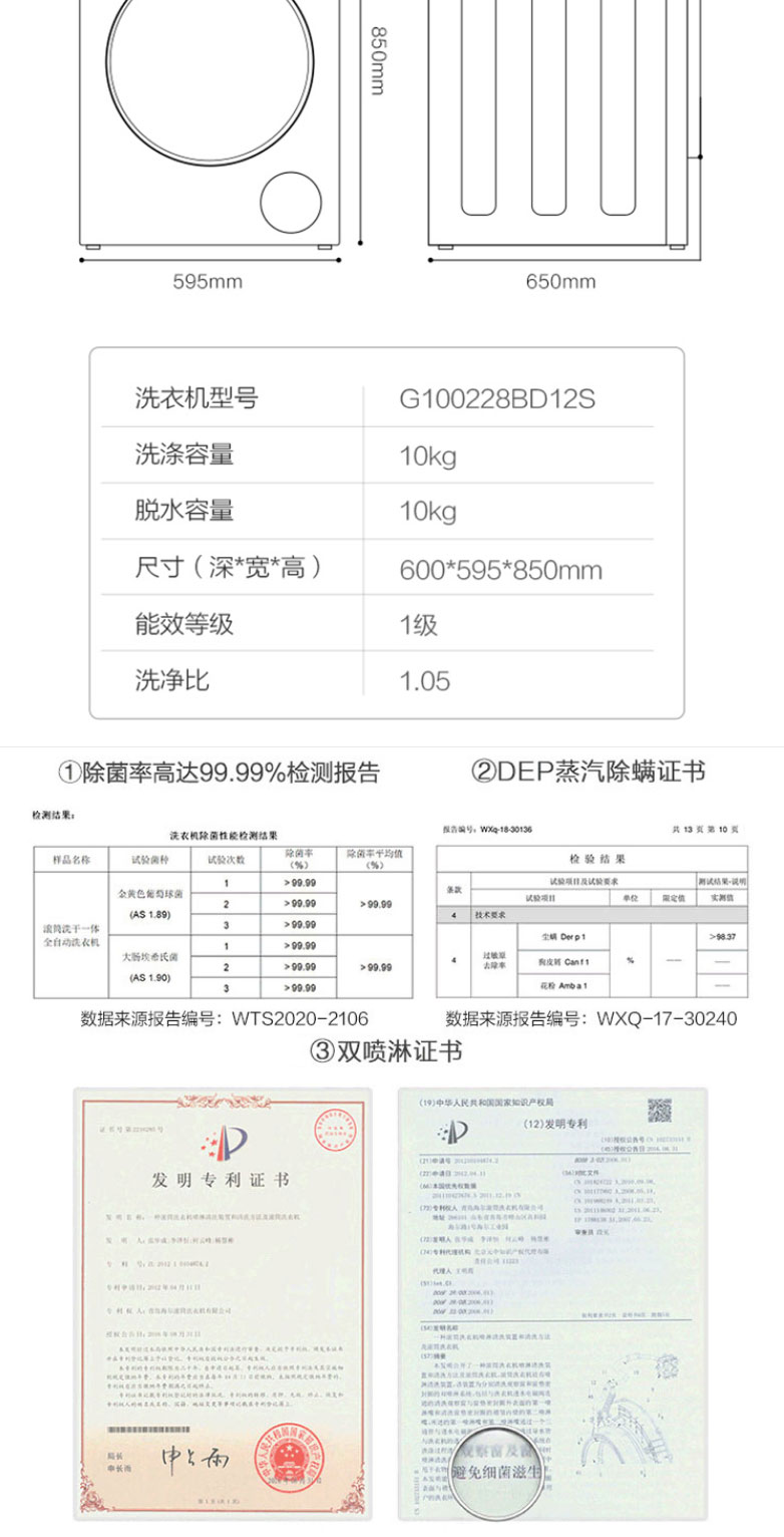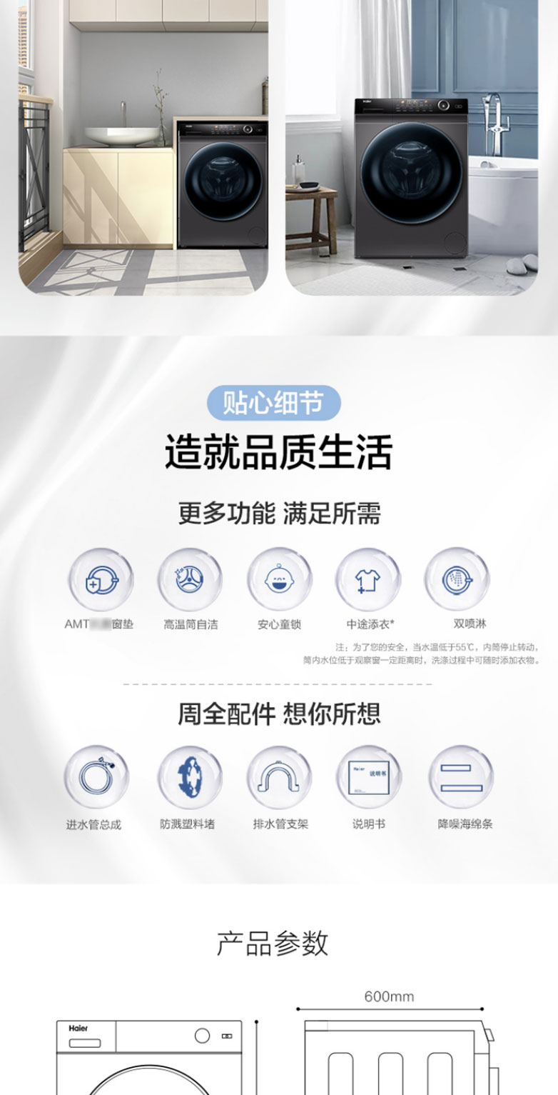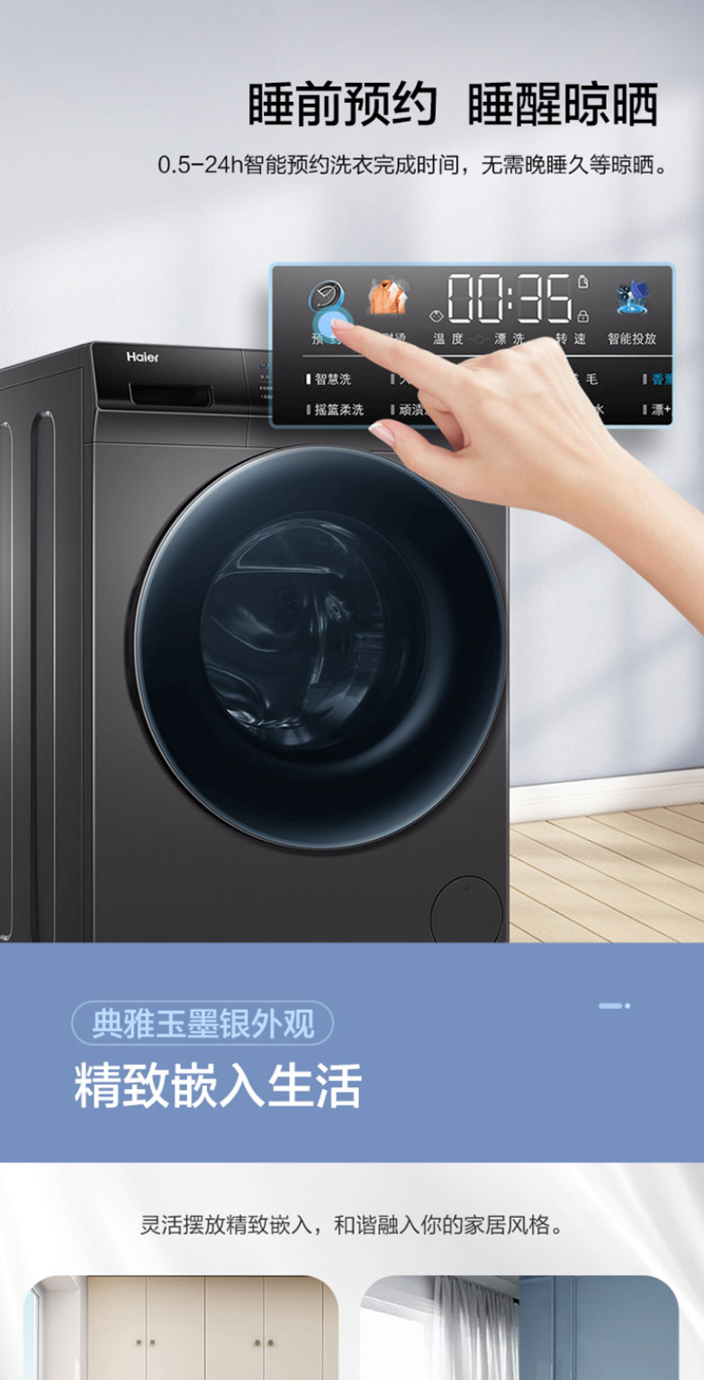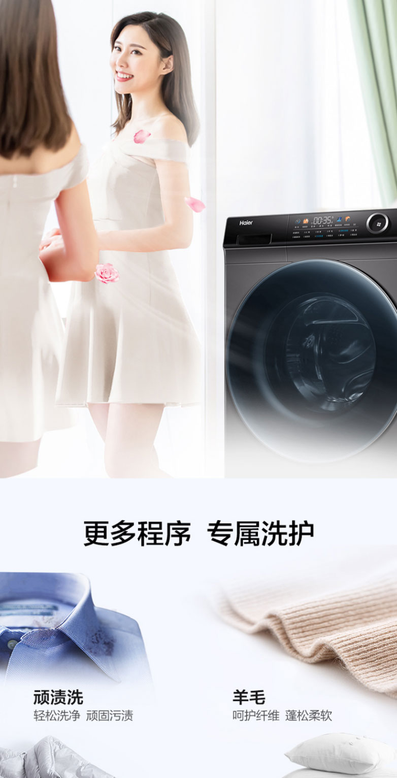 海尔滚筒洗衣机直驱变频10公斤家用节能省电超薄大容量 摇篮柔洗智能预约 蒸汽除菌G100228BD12S
