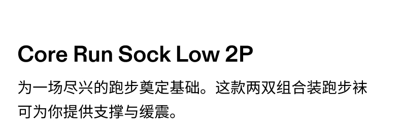 On 昂跑 Core Run Sock Low 2P 低帮跑步袜