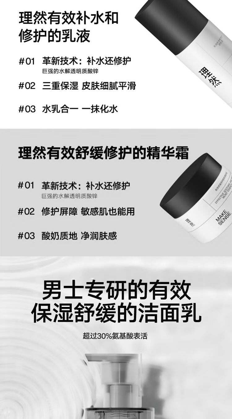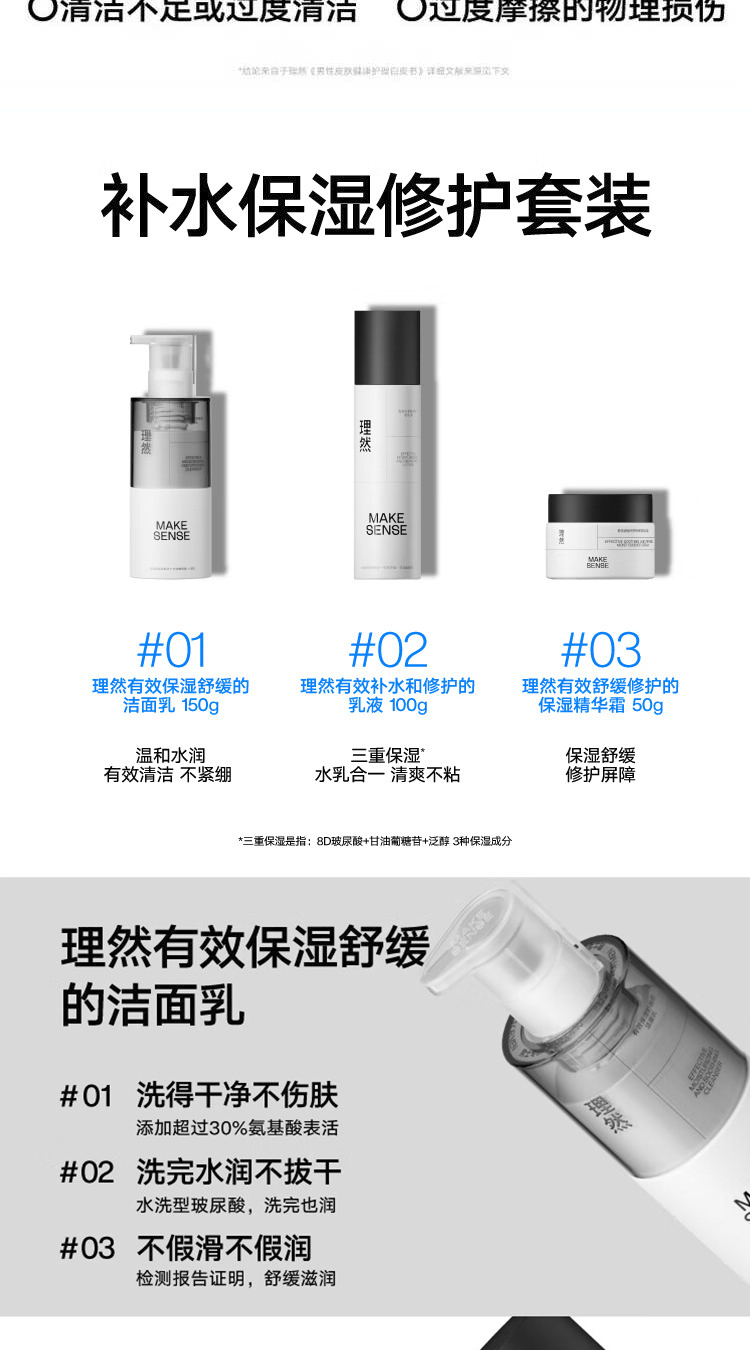 理然男士有效补水3件套(洁面150g+乳150g+精华霜50ml)