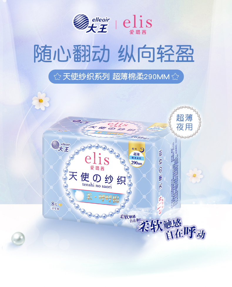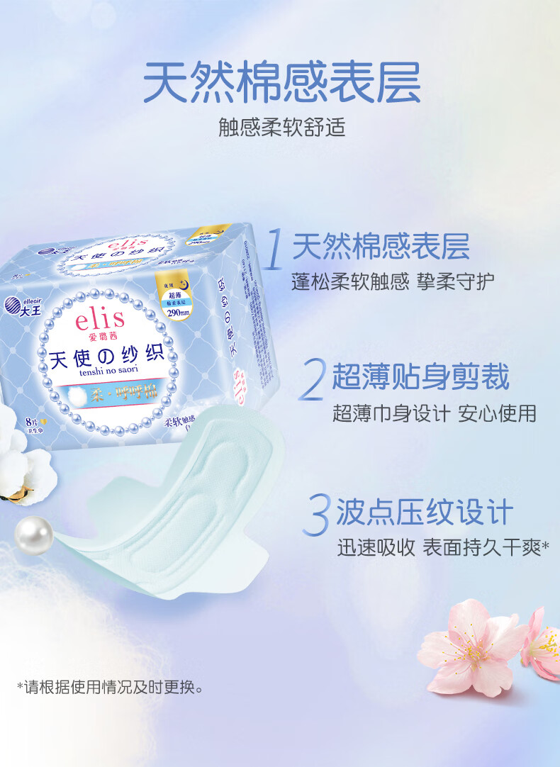 大王爱璐茜天使超薄290夜用卫生巾8片
