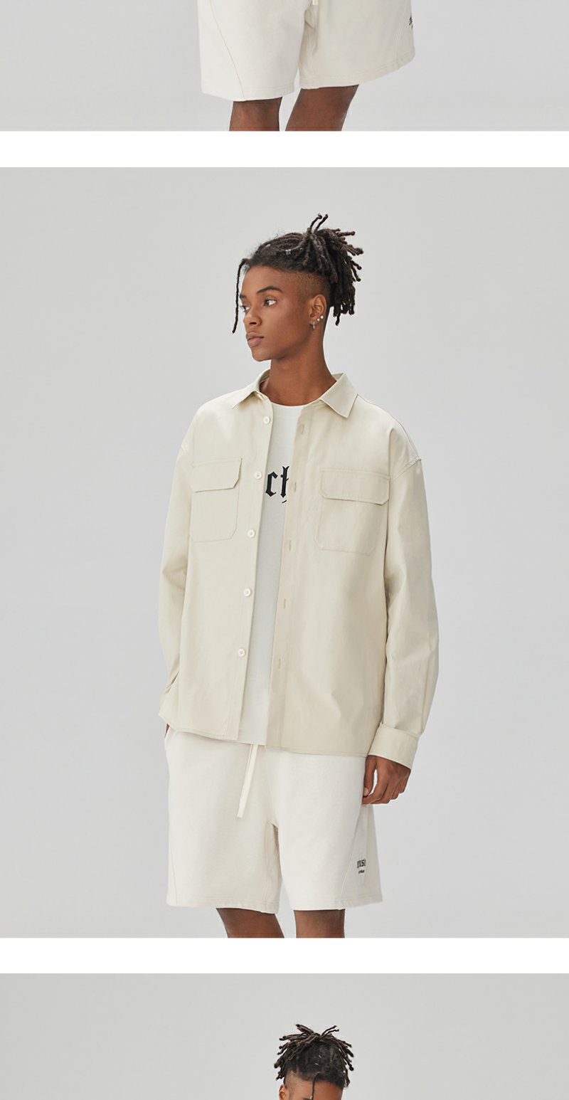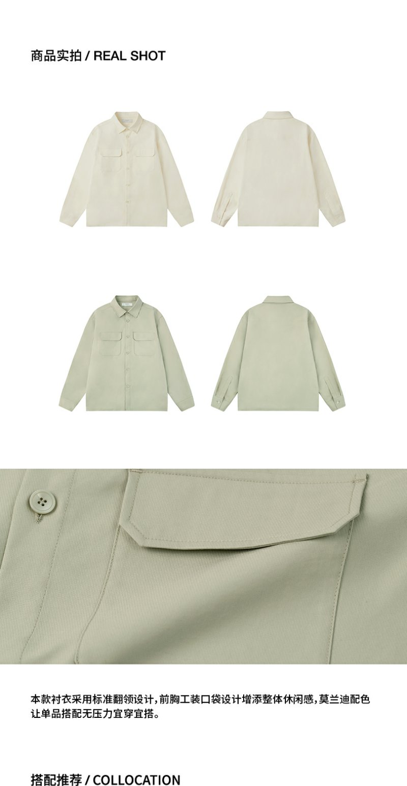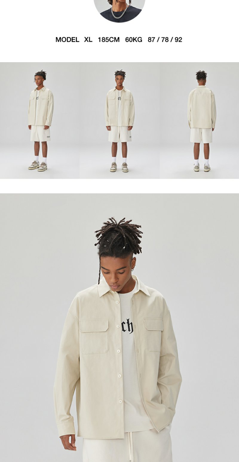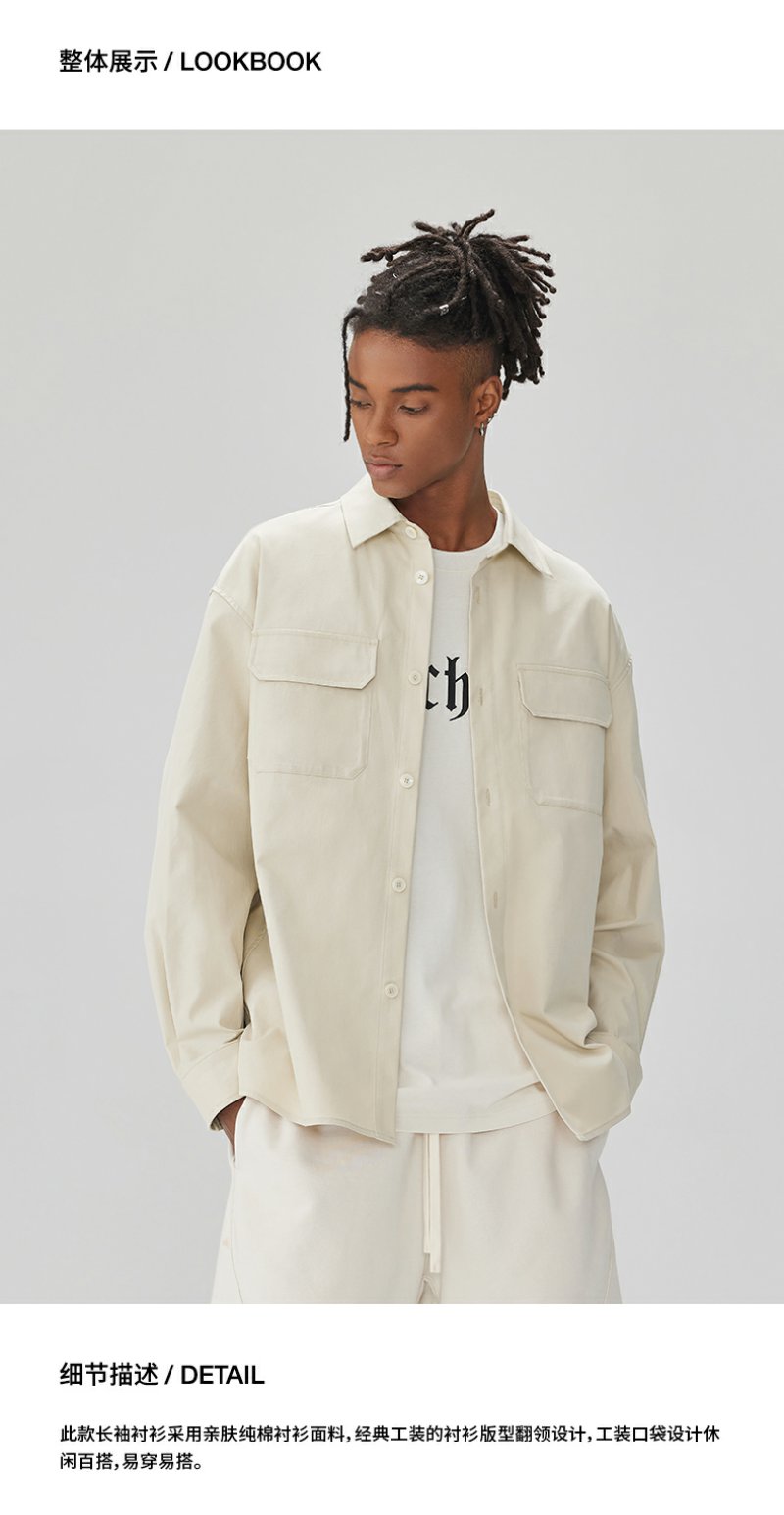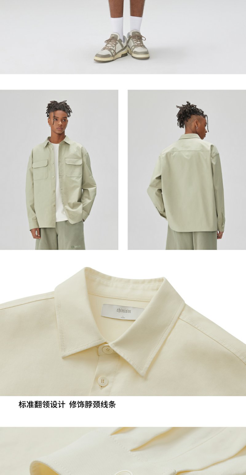 CHINISM CH纯色简约梭织长袖翻领衬衫男美式水洗潮牌休闲衬衣外套