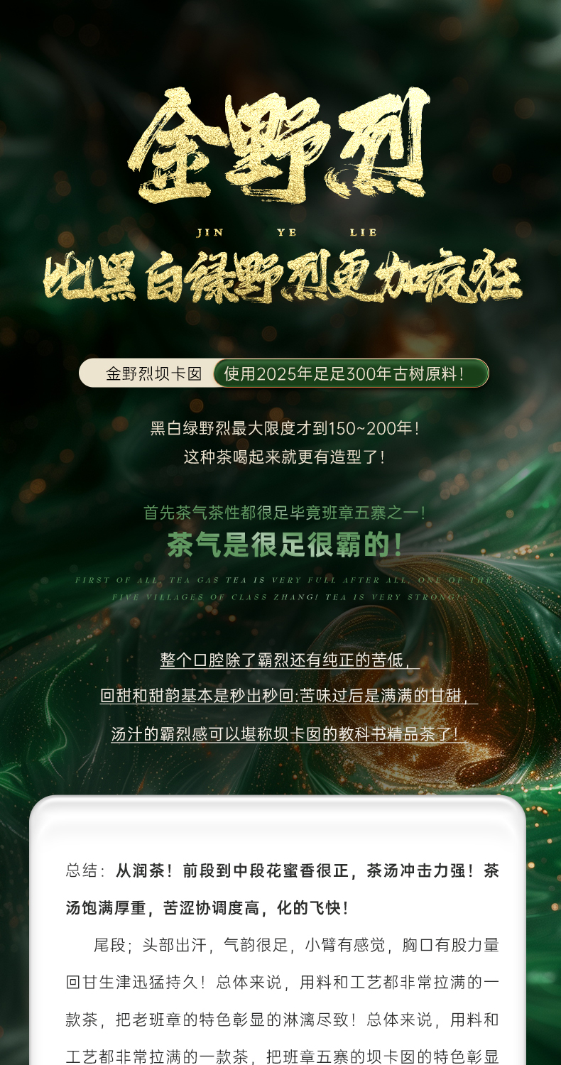 已购茶友建议:300金野烈已达收藏品级,封存未来3-5年再品,口感价值大有不同!