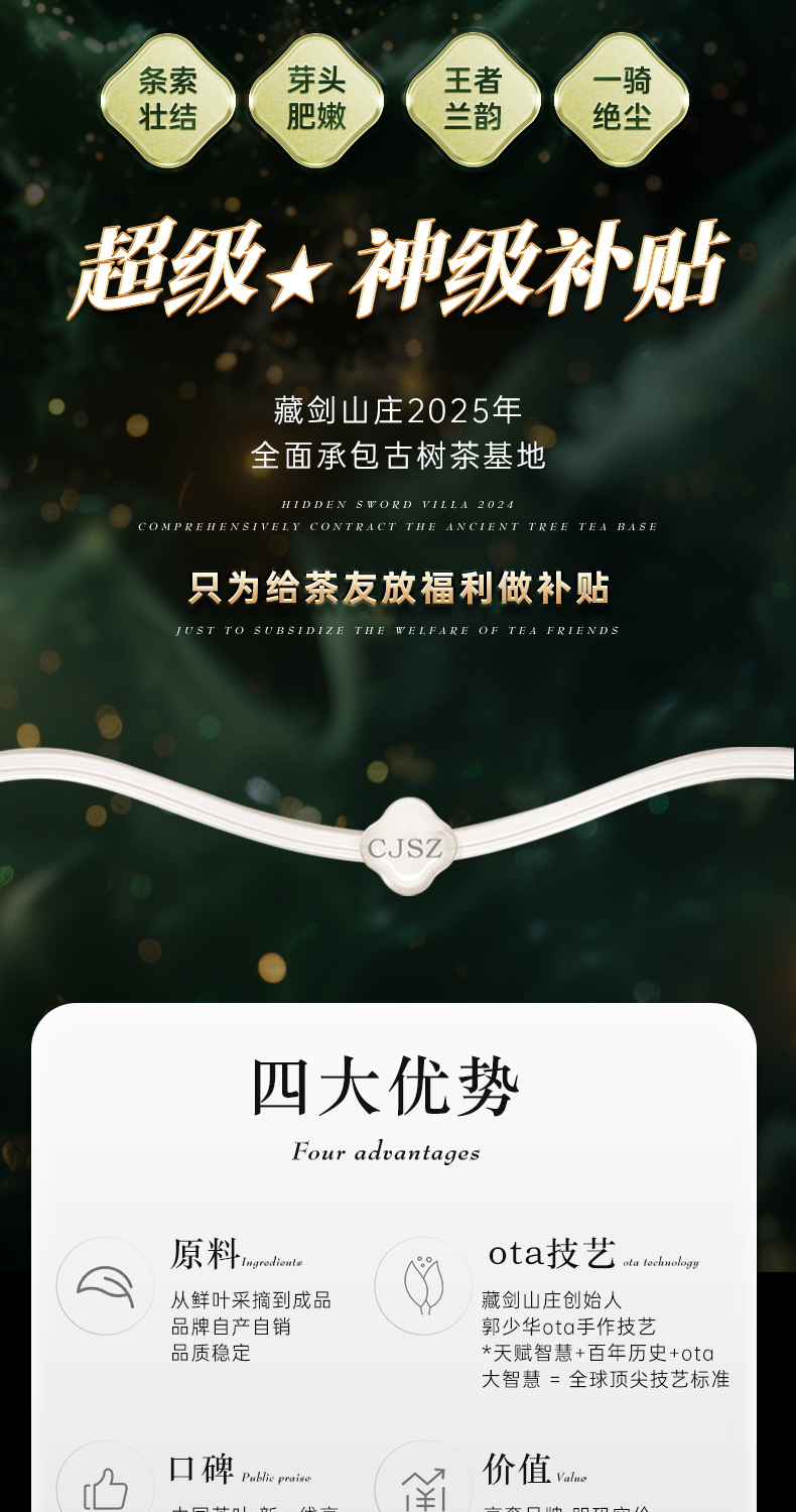 【限量50片返场】藏剑山庄2025春茶!限量50片!24点准时下架!坝卡囡300年古树纯料《2025金野烈》200克/片