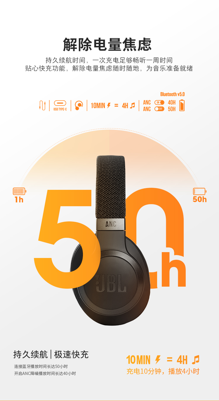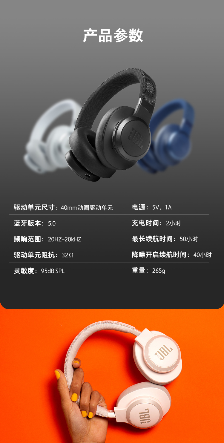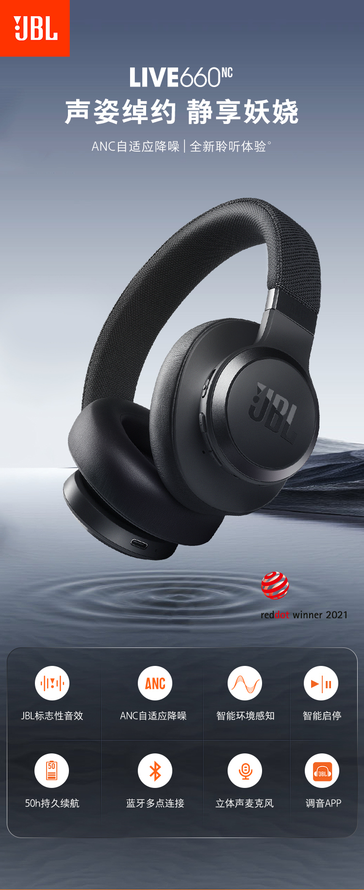 JBL LIVE660NC 主动降噪头戴式蓝牙耳机
