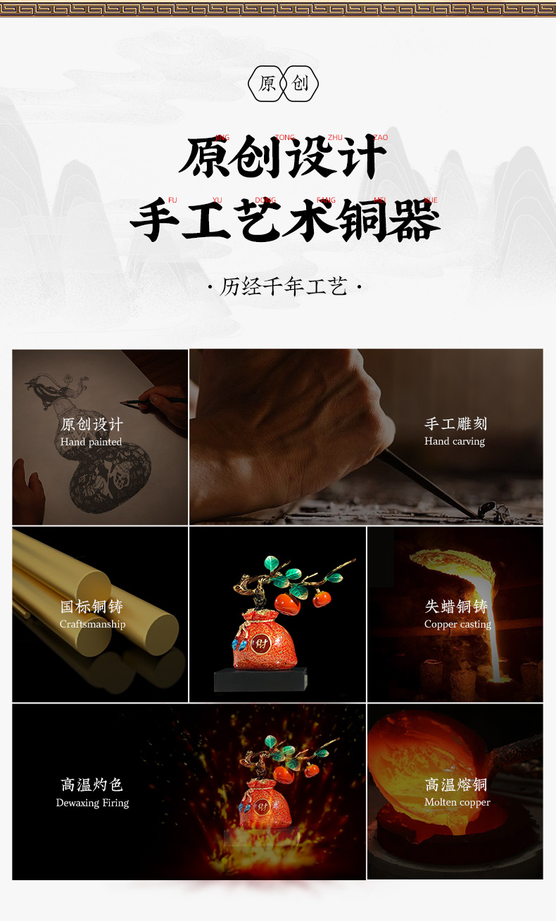 E-QK-BJ1501A世代有钱-纯铜摆件(220*100*220)
