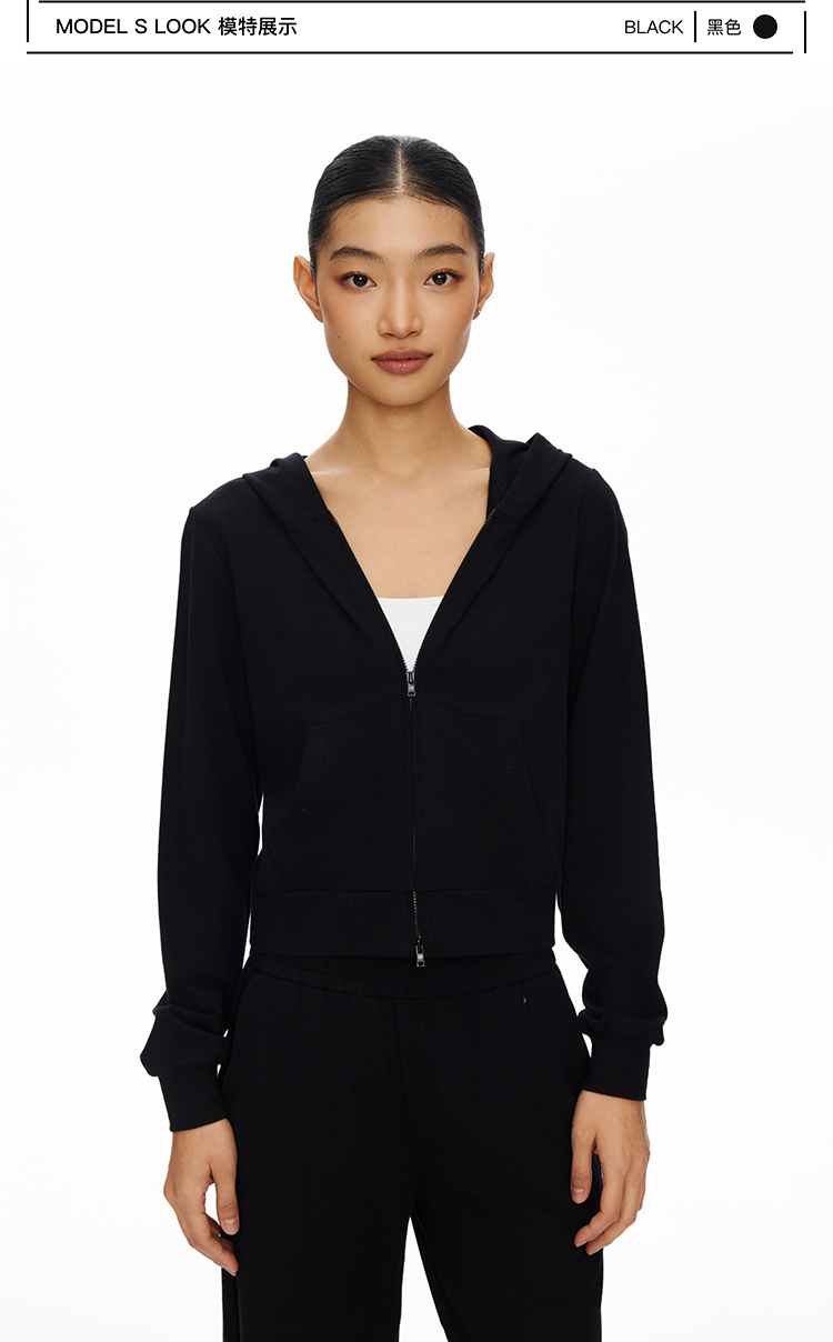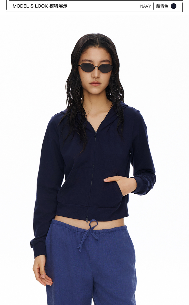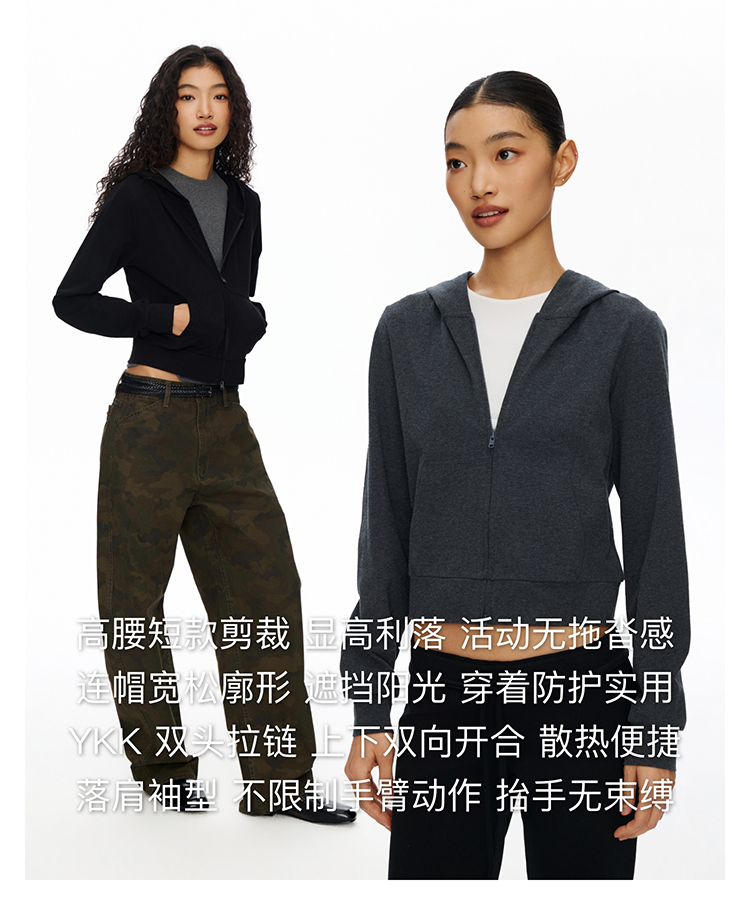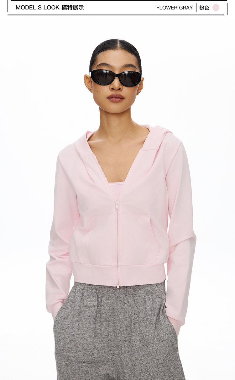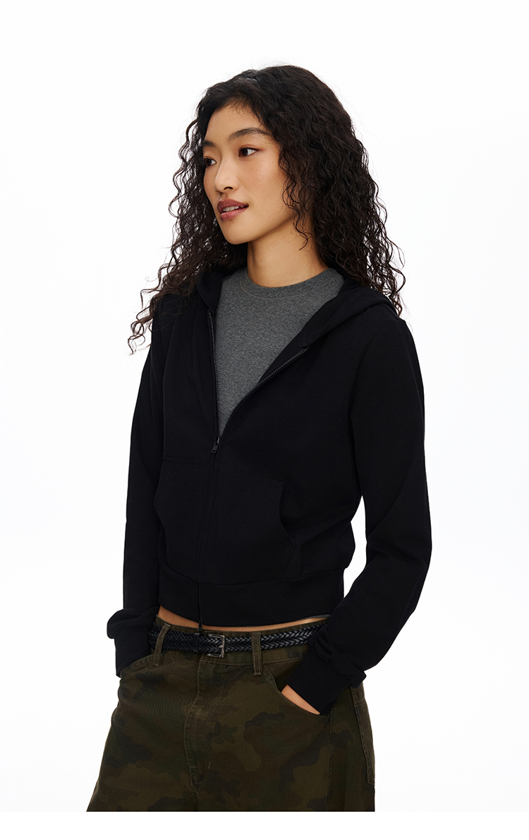 短款拉链连帽薄卫衣