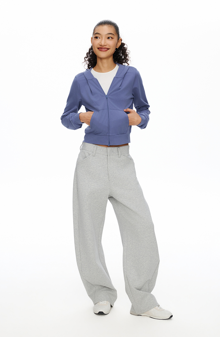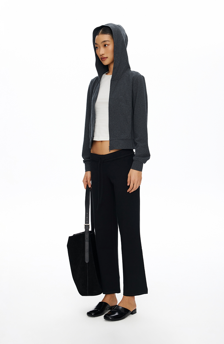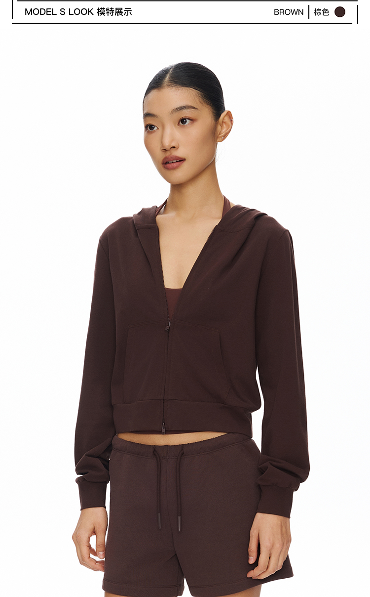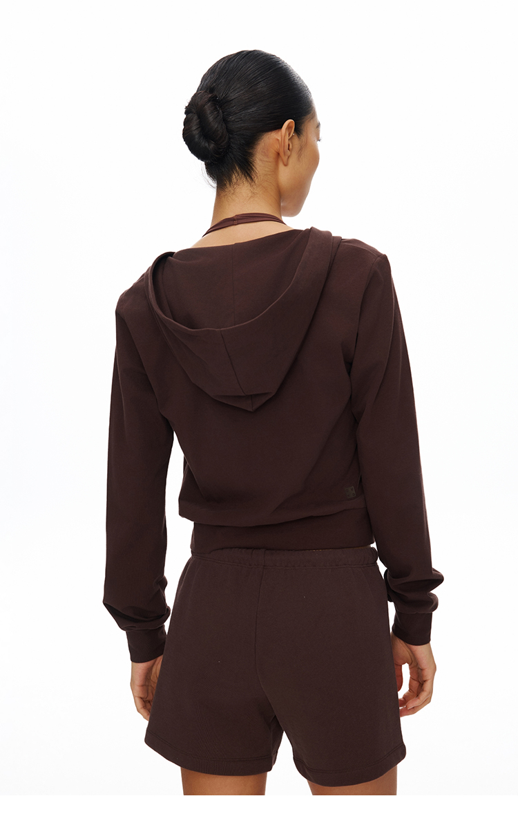 短款拉链连帽薄卫衣