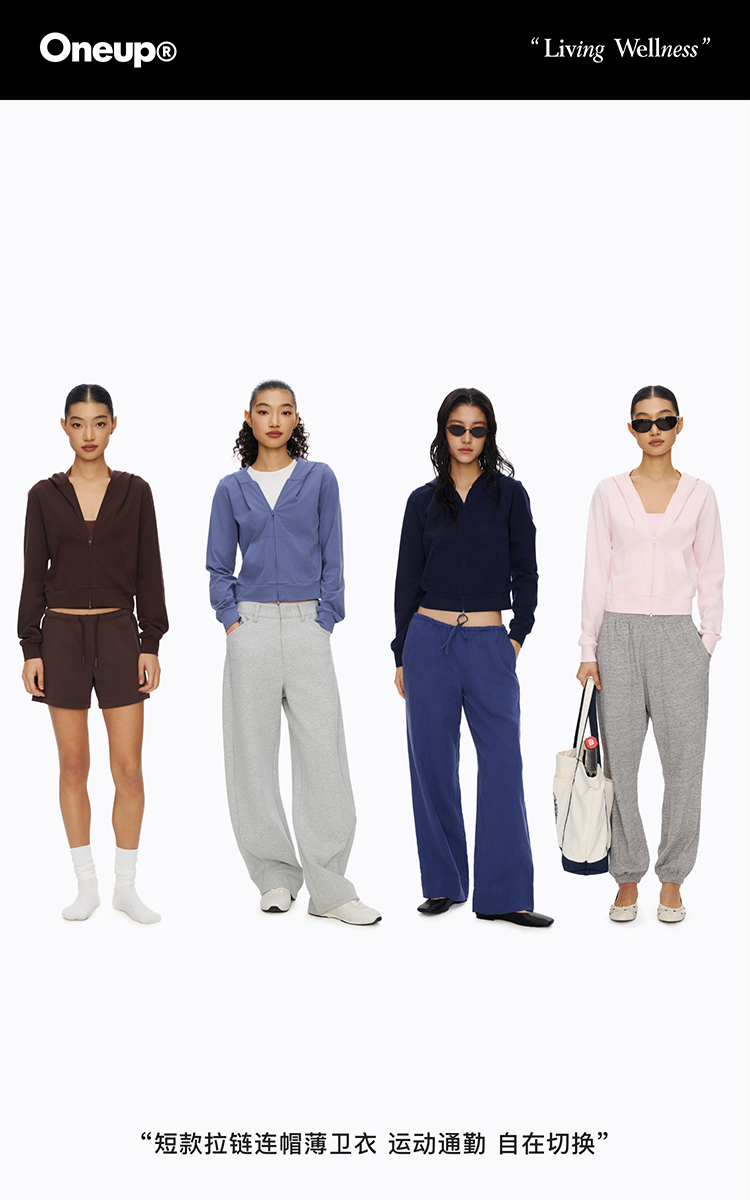 Oneup短款拉链连帽薄卫衣