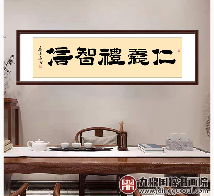 张景会《仁义礼智信》48*178cm 四字书法横幅作品 茶室/书房/办公室挂画