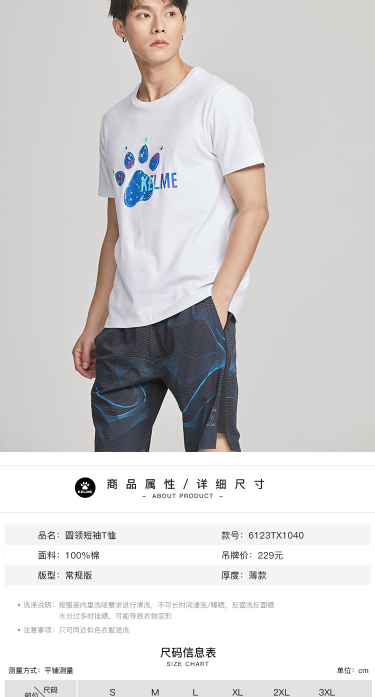 KELME卡尔美运动休闲短袖T恤夏季舒适透气经典logo印花宽松上衣男6123TX1040