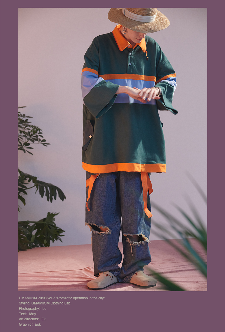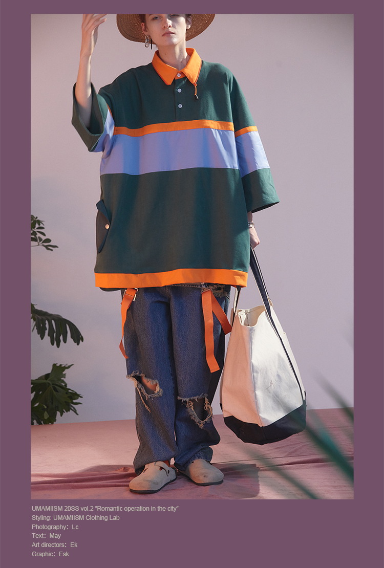 UMAMIISM 20SS 甜约翰夏季美式复古户外撞色面料拼接polo马球衫