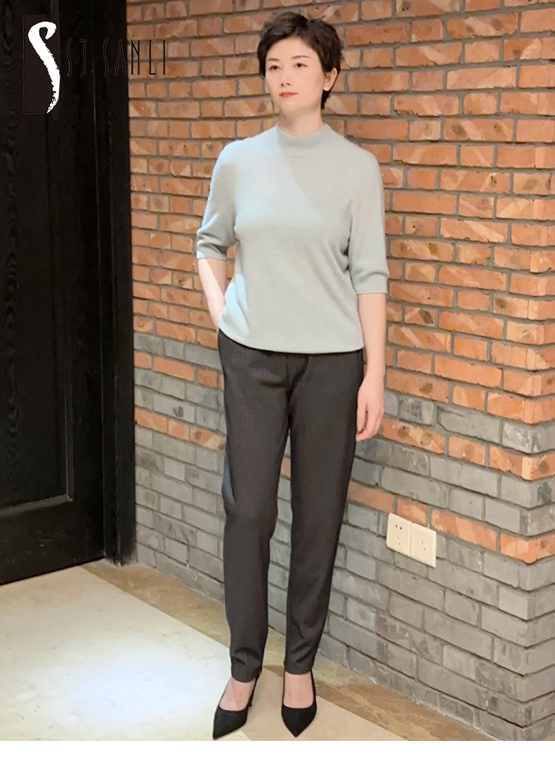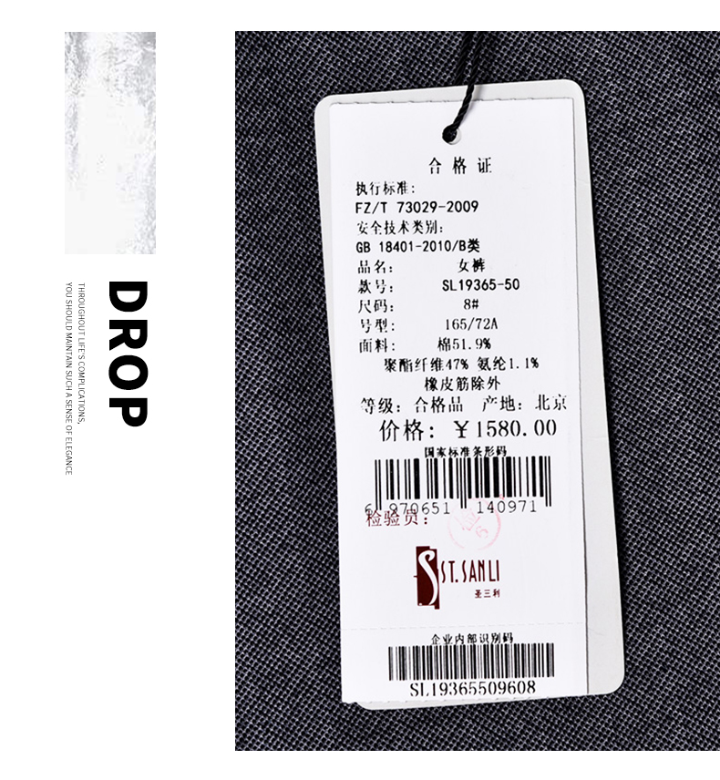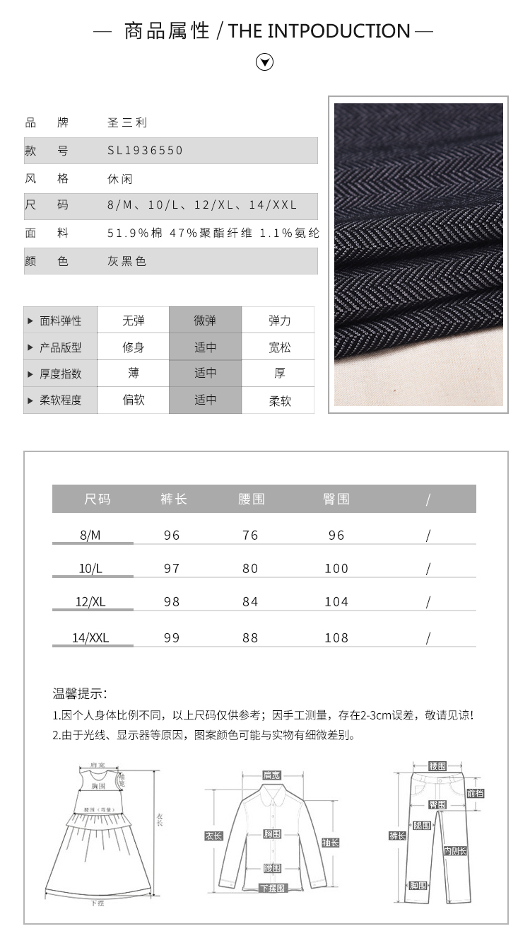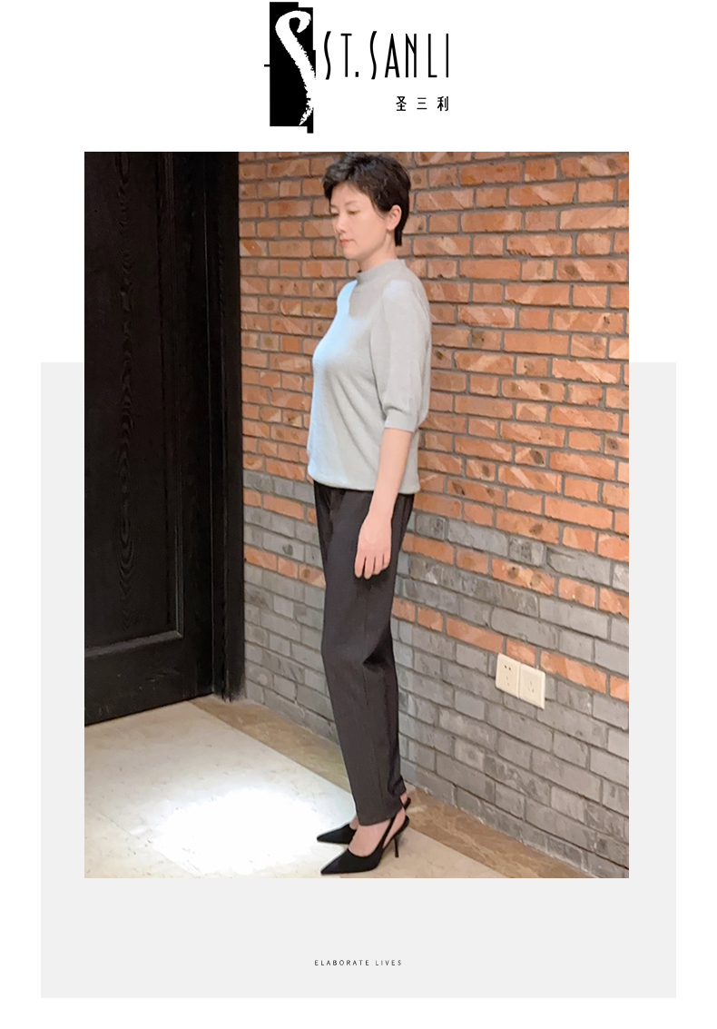 圣三利女装 新款简约时尚锥形纯色肌理九分烟管女裤SL2016120