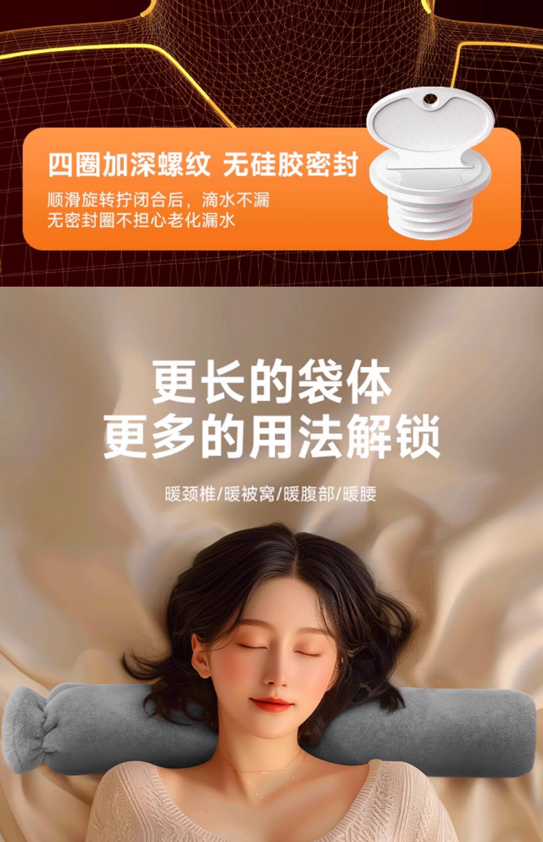 「升级加长款!注水热水袋」长条防爆加长灌水大号暖水袋居家日用暖床被窝女生肚子