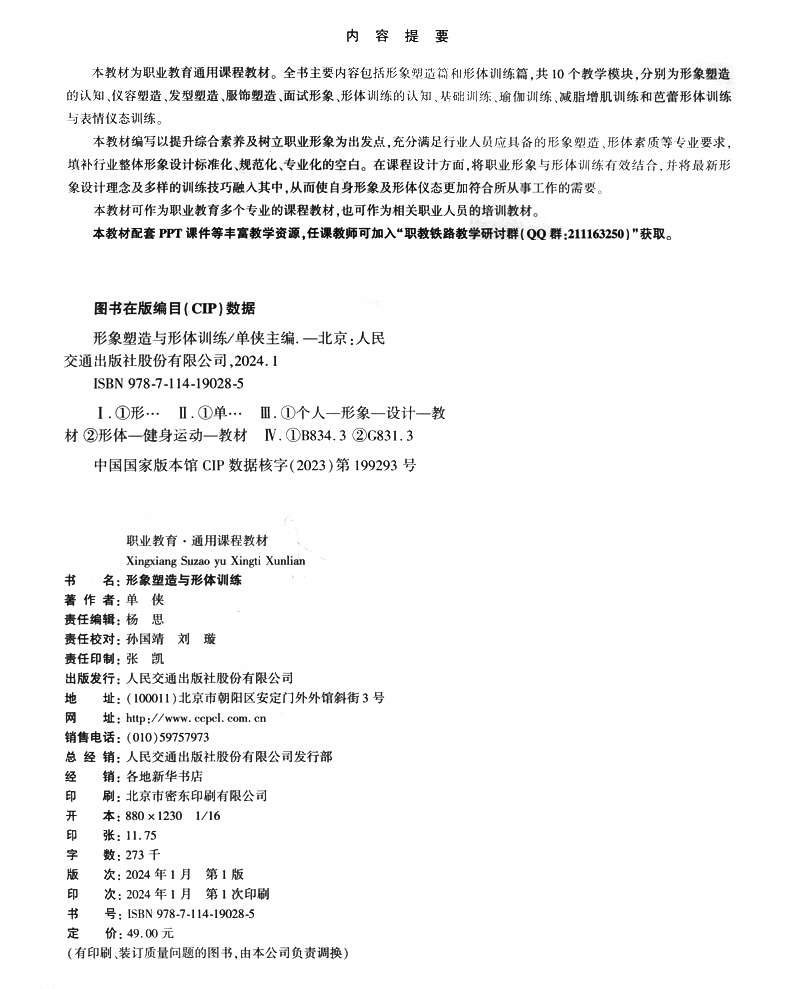 书名:形象塑造与形体训练