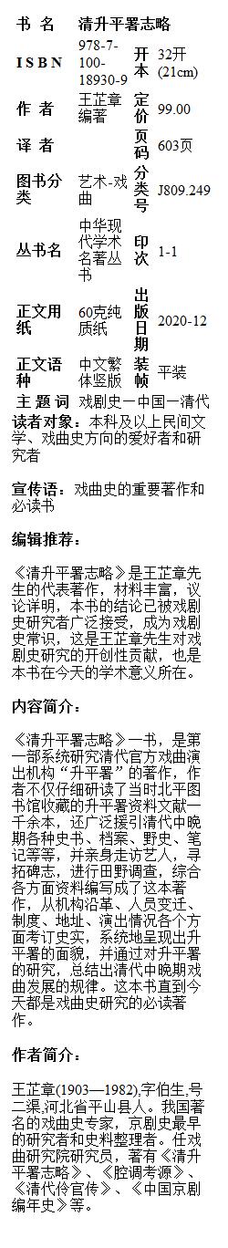 清昇平署志略\x09 王芷章 编著 中华现代学术名著丛书·第七辑(繁体竖版)