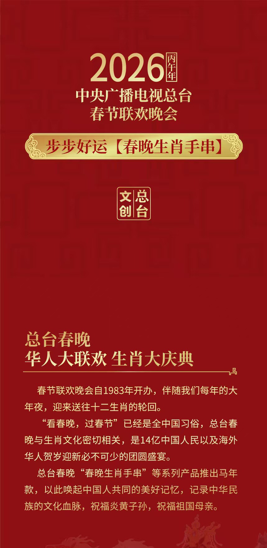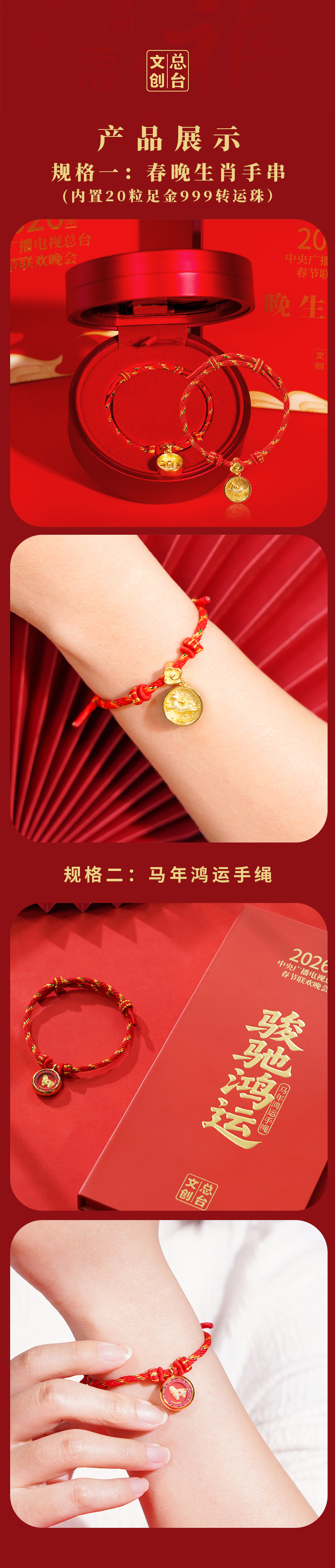 备注:本产品目前销售火爆,总台文创将于下单72小时内左右给大家发出,顺丰快递,送货上门。 祝各位马年大吉!带着春晚手串看春晚!
