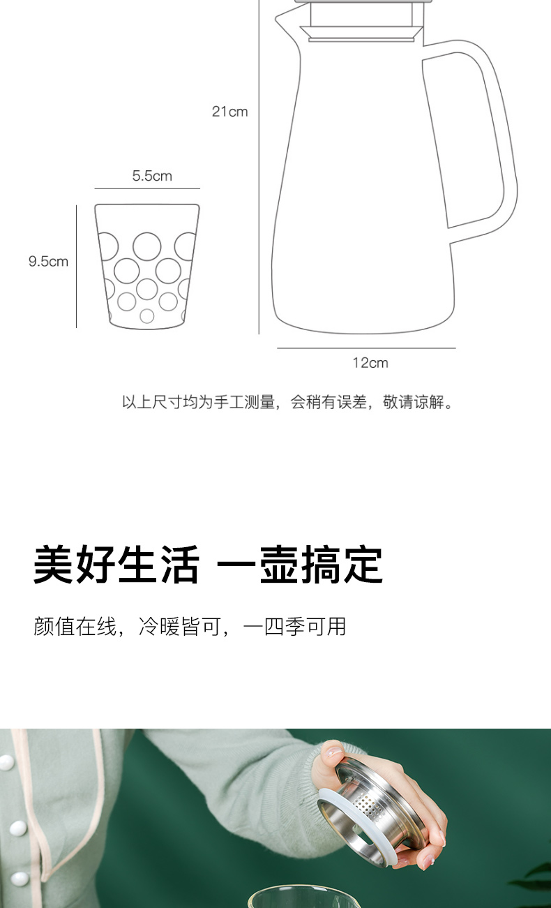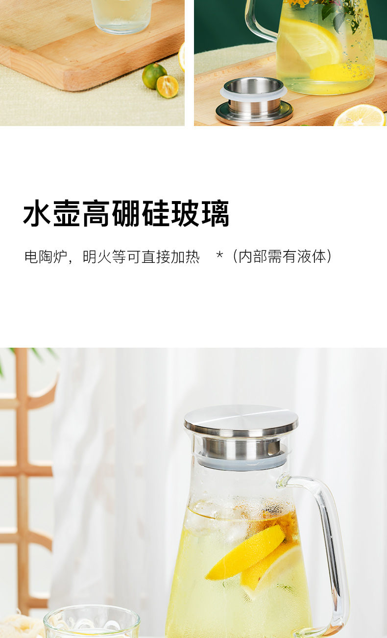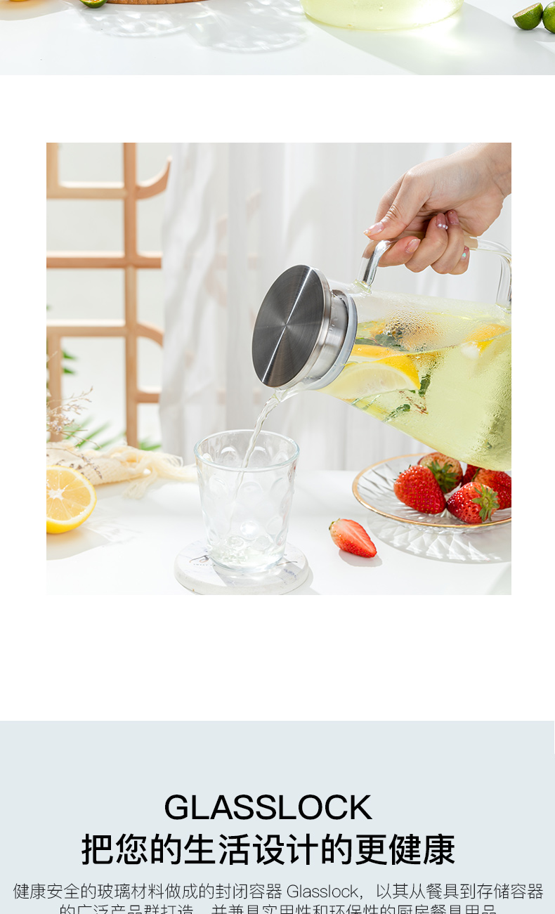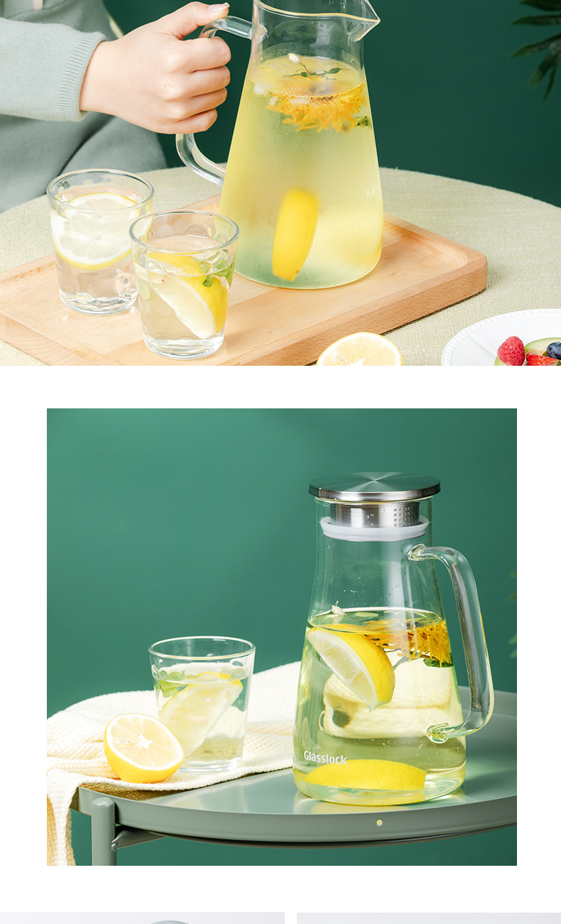 【清仓特惠6折,仅2套,无货退款】韩国Glasslock耐高温玻璃冷水壶家用冰箱大容量凉水杯凉开水壶 水具组(一壶四杯)