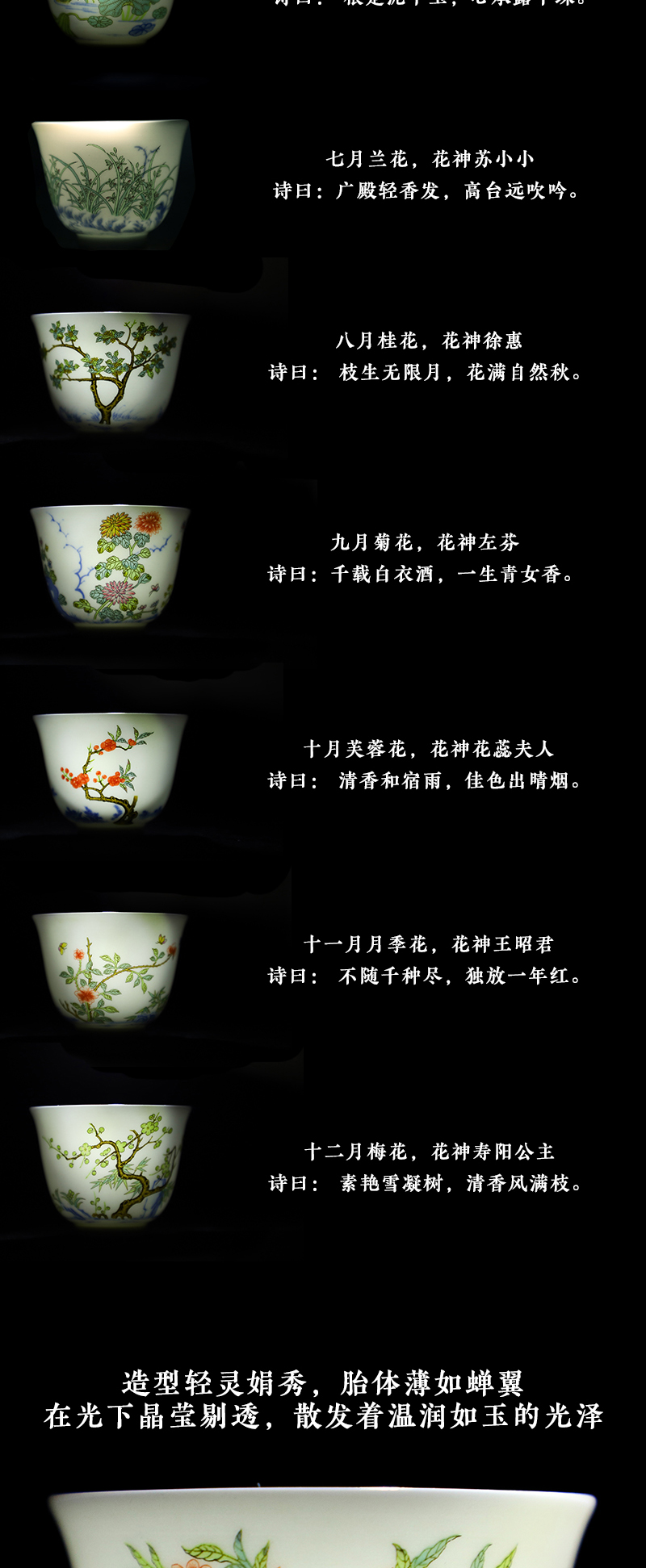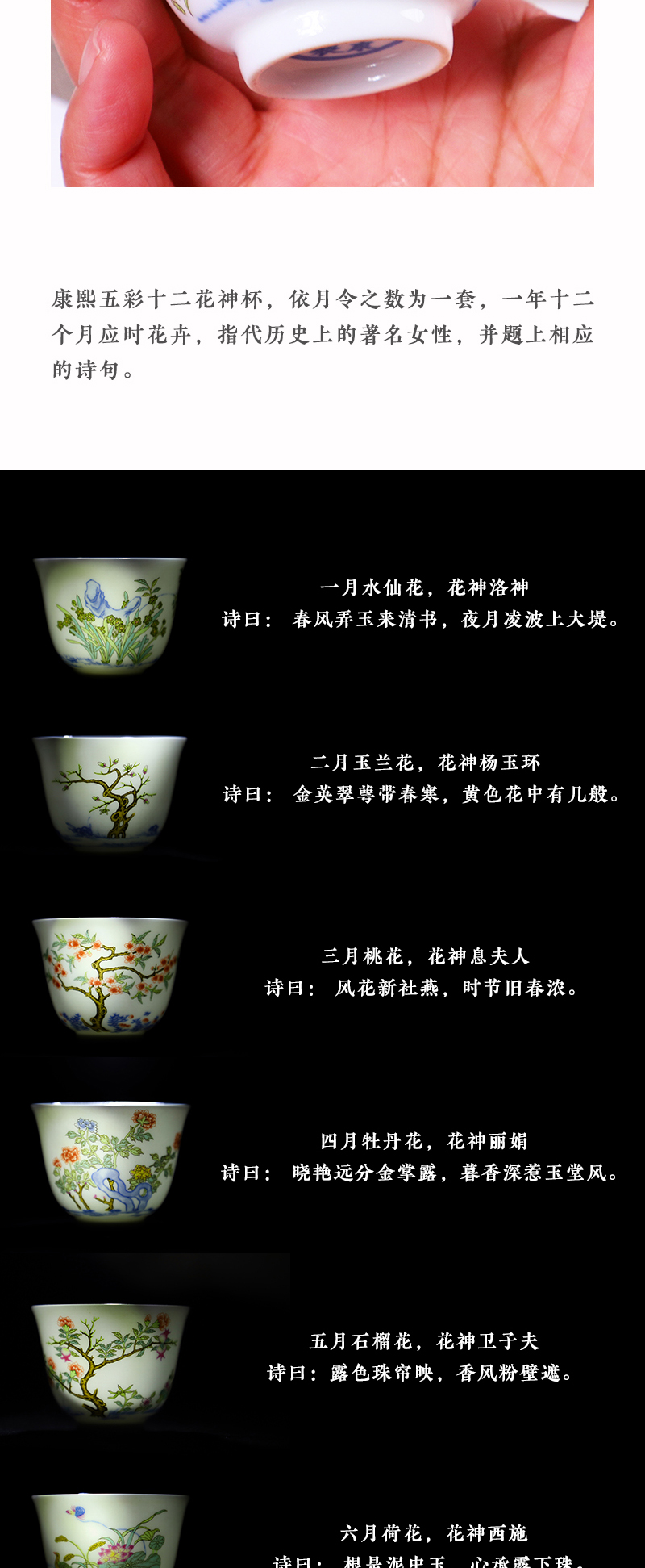 康熙五彩十二花神杯,一月一杯,风雅至极【G】