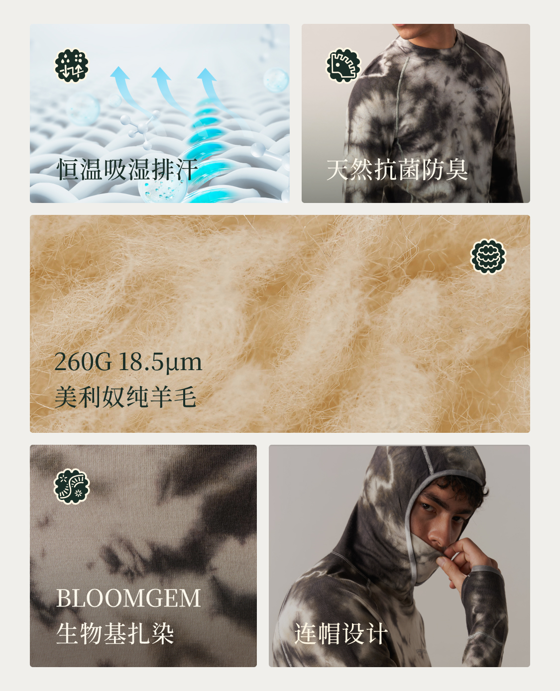 羊毛打底衫保暖轻量吸汗扎染长袖上衣冬男款UPPERVOID二普纬度