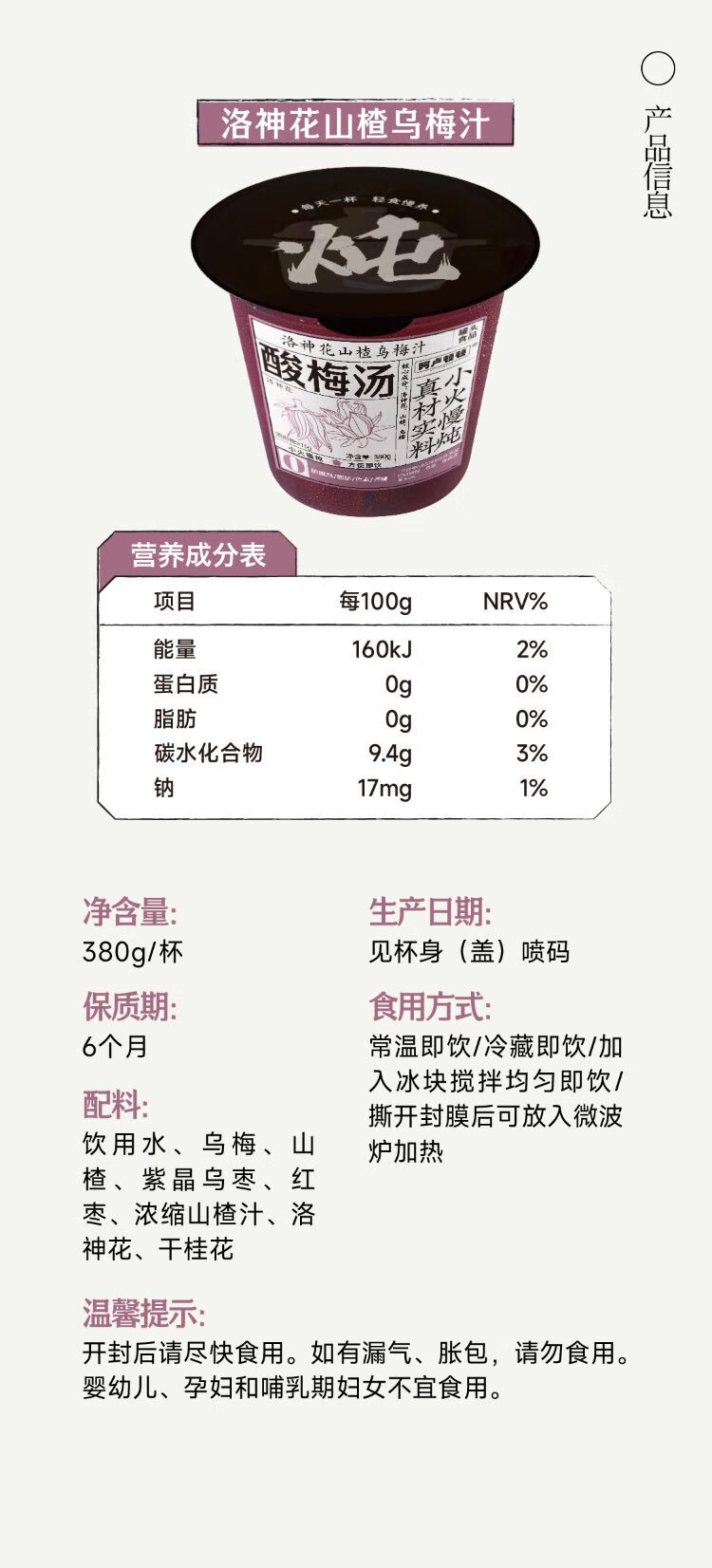 阿卢顿顿山楂乌梅汁酸梅汤 380g/杯