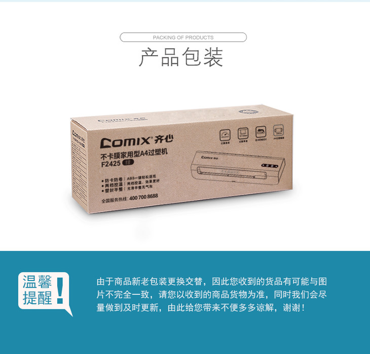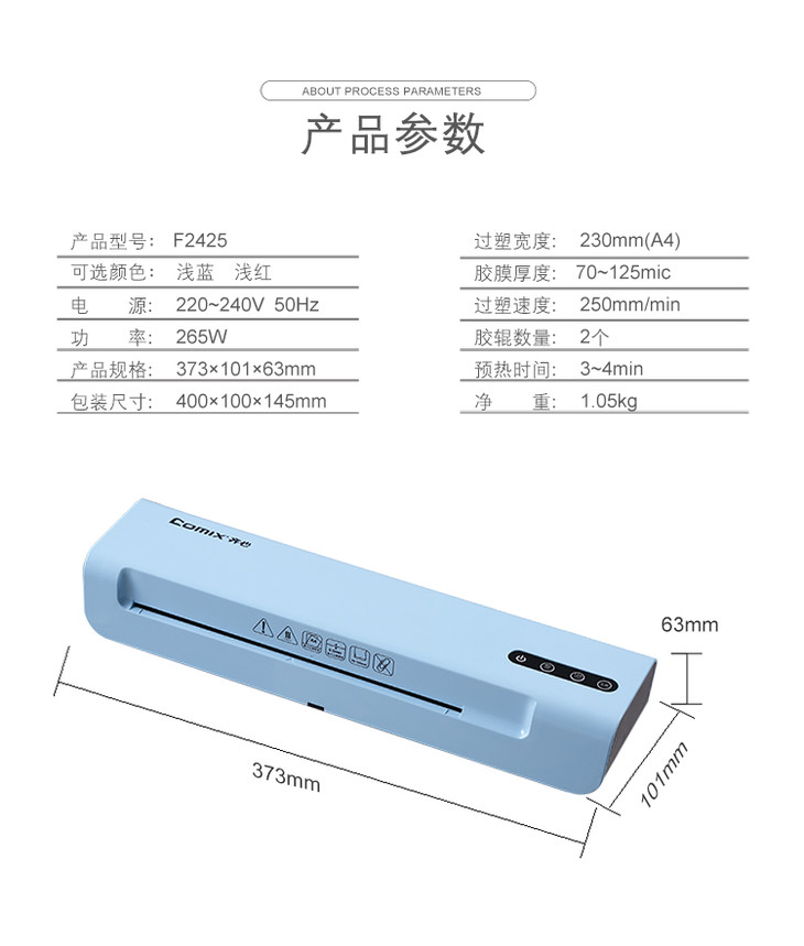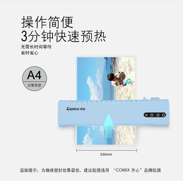 齐心 F2425 A4家用式过塑机F9015B-QX03