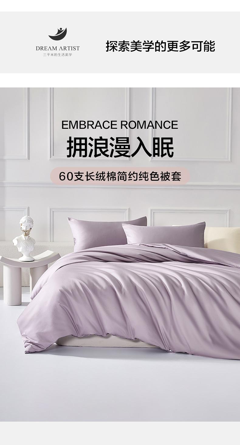 水星家纺60支长绒棉简约纯色素色被套亲肤透气轻奢被罩单件严选