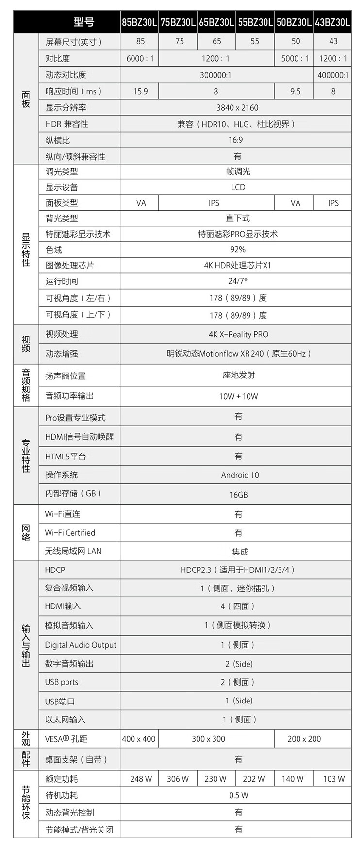 索尼SONY电视机50英寸显示器屏会议4K超高清FW-50BZ30L IPS设计师面板