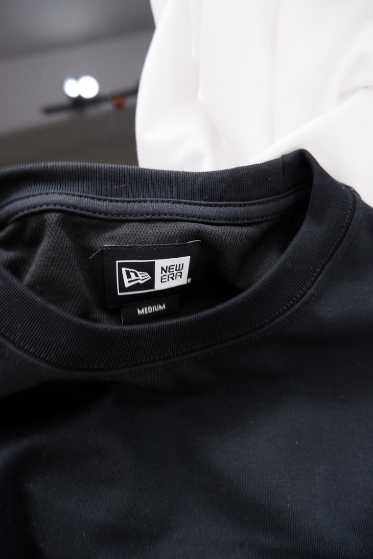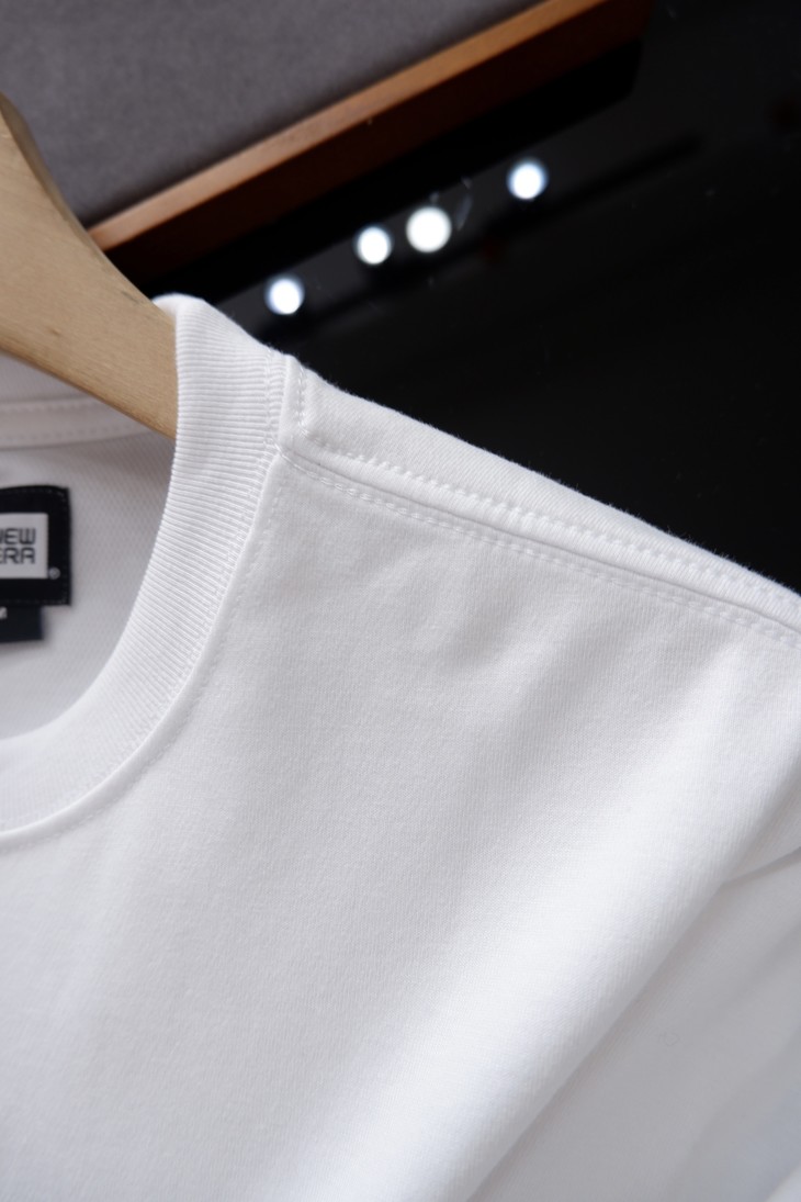 正品的T面料是彩用了26支双面网眼面料, 也就是双纱,所以它比普通的T恤面料厚实,虽然厚实但并不代表它会热,为什么夏天的T恤做出这么厚,因为采用了COOL era面料,独有的技术, 面料虽然厚实,但透气性好,吸湿性好