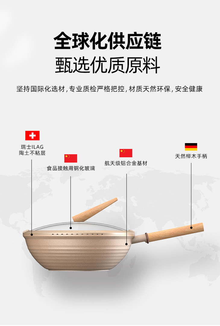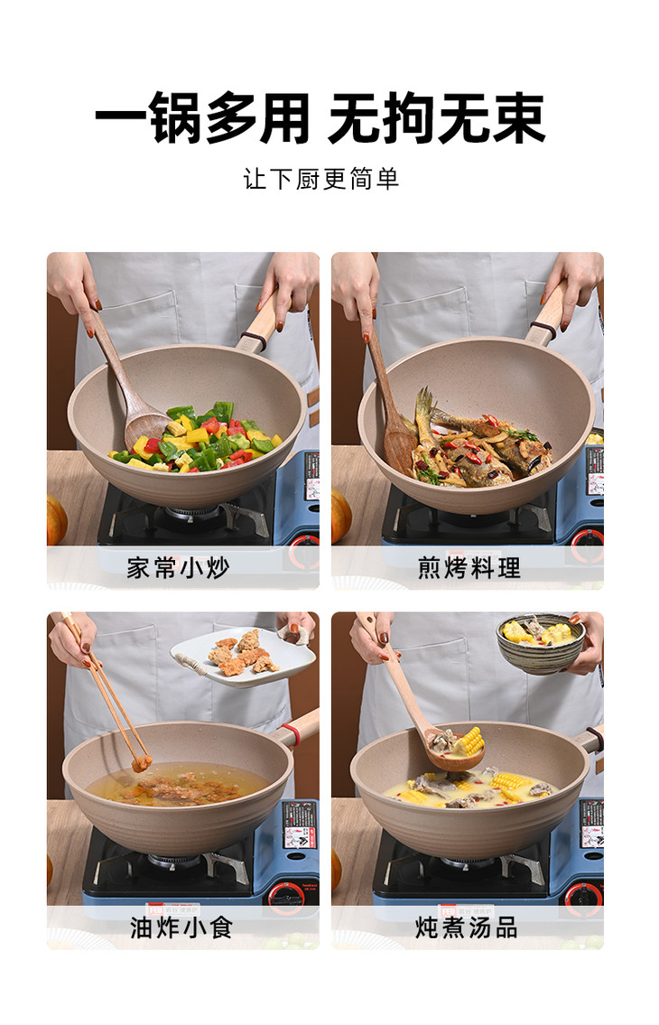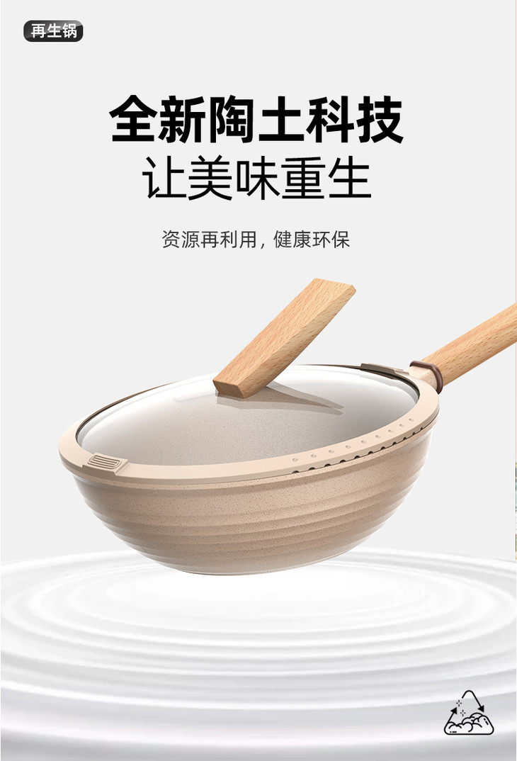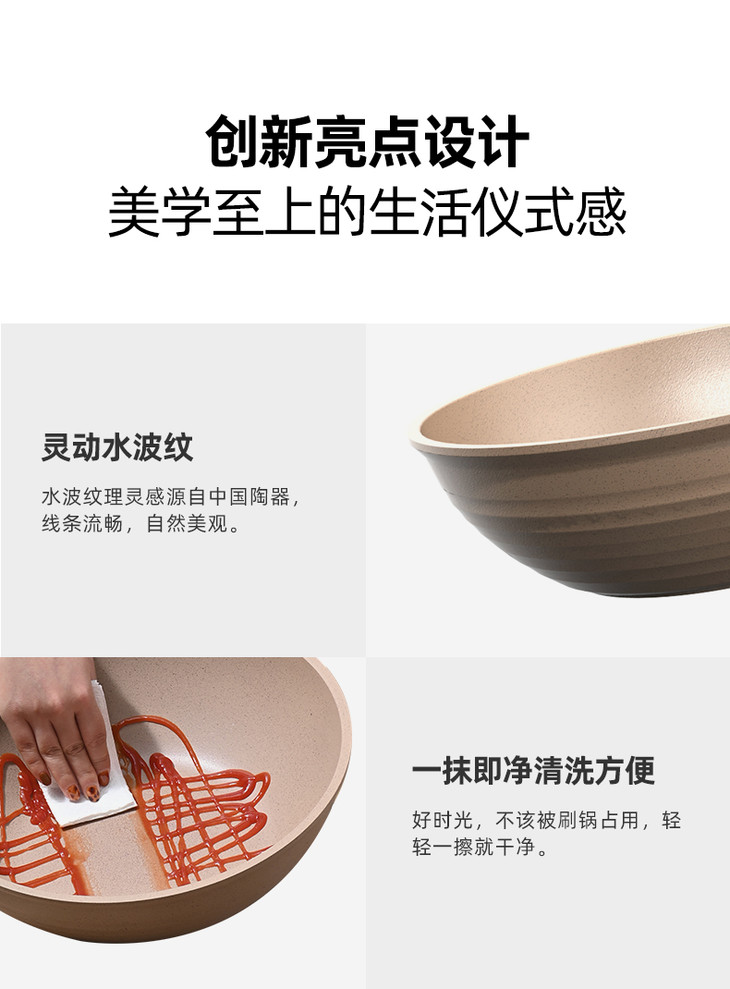 【已下架】悦味 元麦升级款陶土不粘炒锅德国LGA标准更耐磨5.2L[福利品]