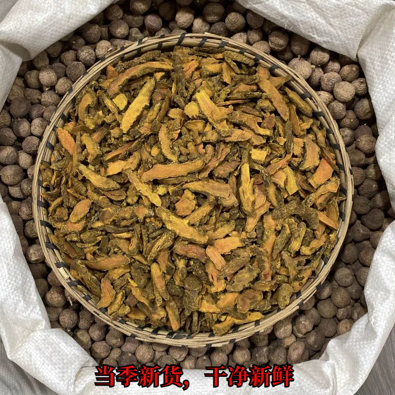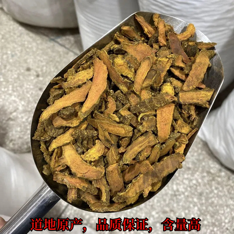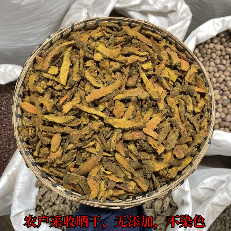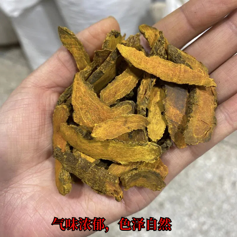 姜黄片,颜色纯正,质坚实,具蜡样光泽,香气特异