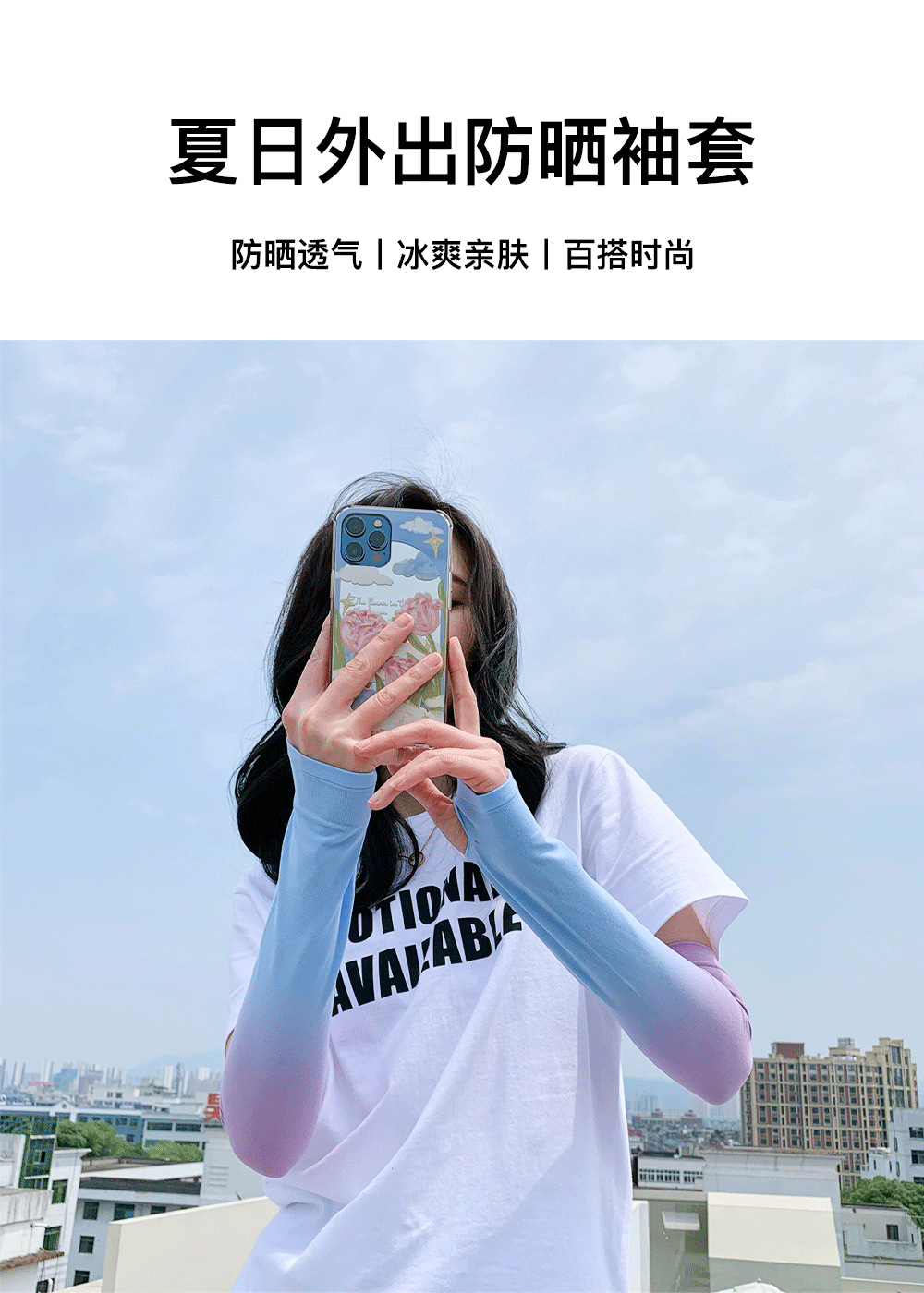 【买1送1清爽一夏!夏天防晒不怕黑!】春夏新款防紫外线冰丝手袖渐变色冰袖,UPF50+袖套护手臂,阻隔95%紫外线拒绝变黑,款式时尚,柔软透气不闷热,户外运动露营野炊骑车防晒