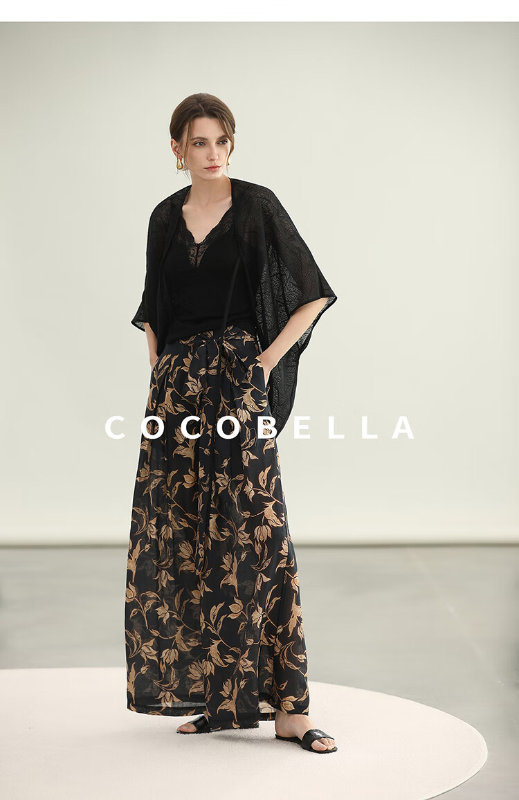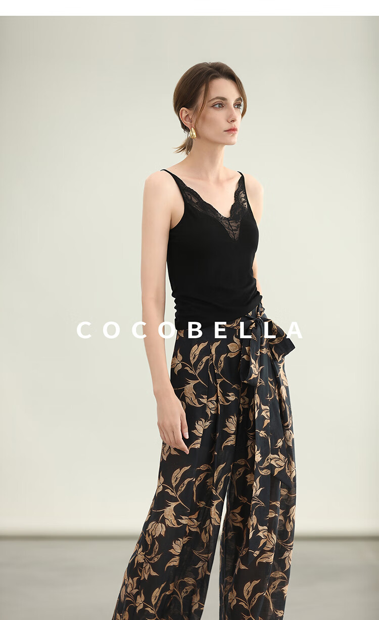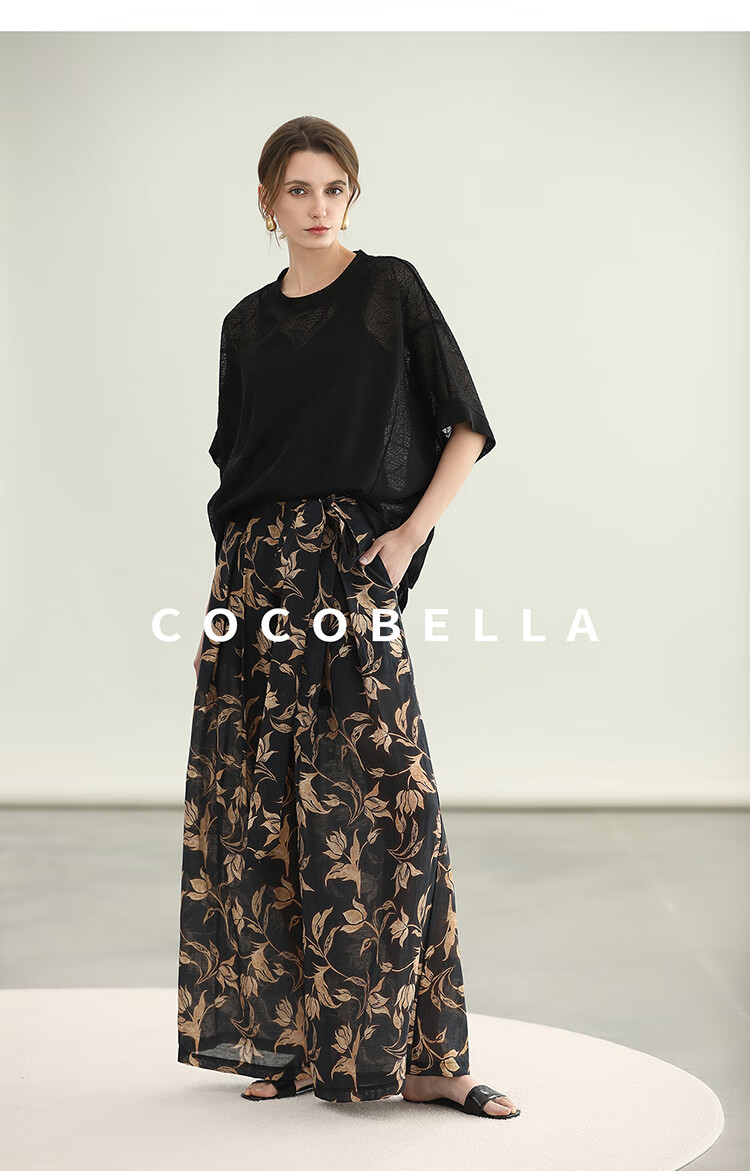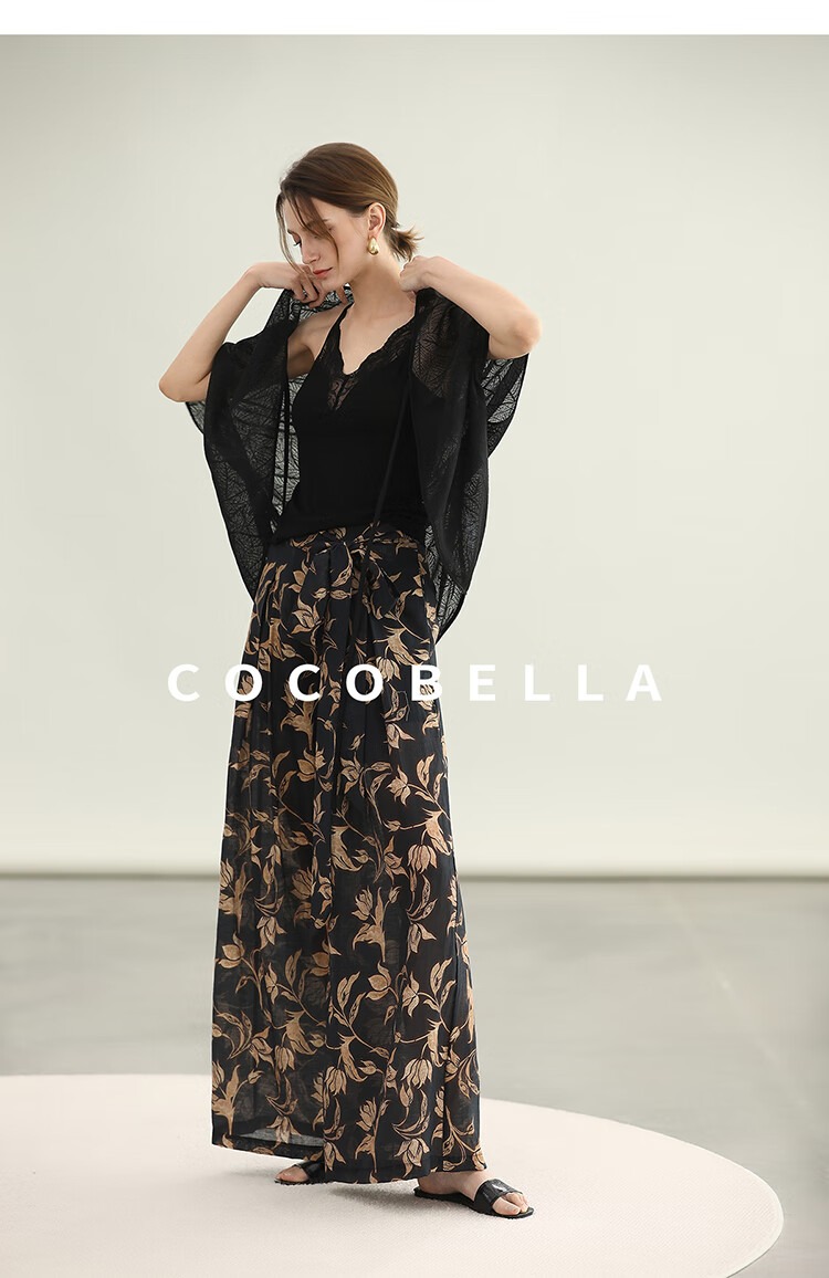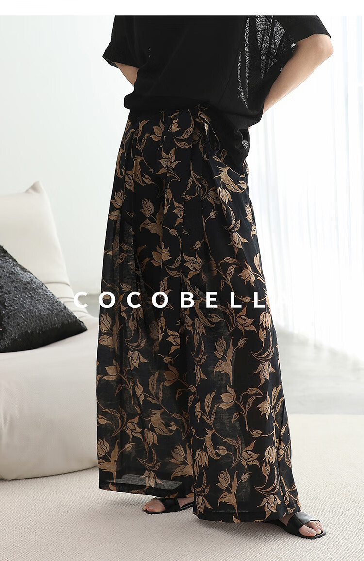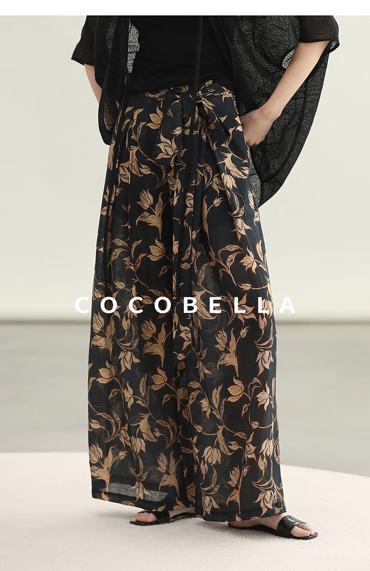 COCOBELLA莱赛尔度假风阔腿裤大女主绑带打褶休闲裤PA3075
