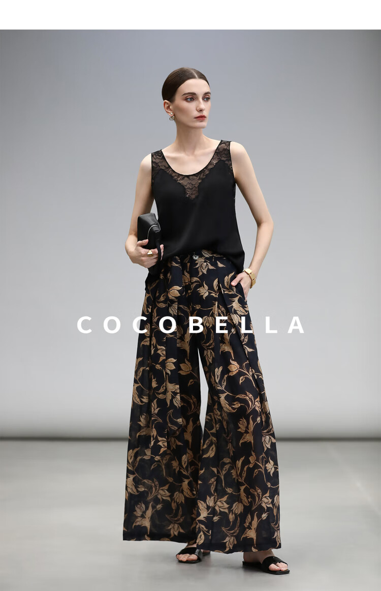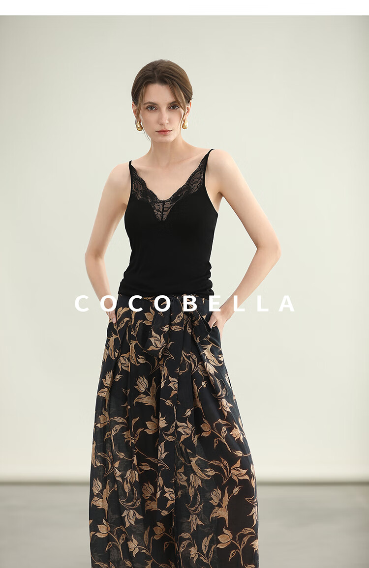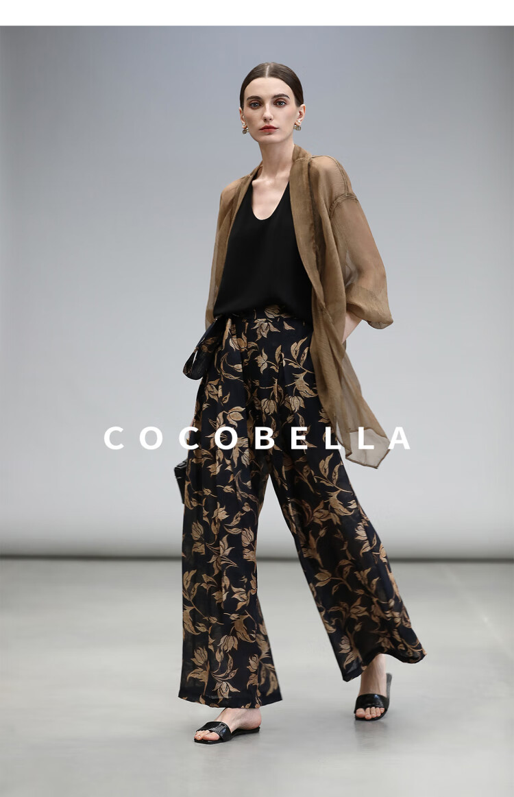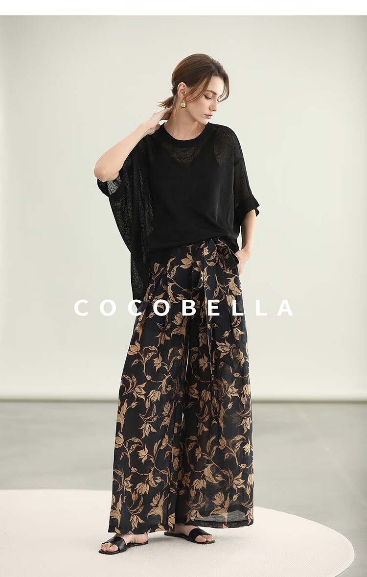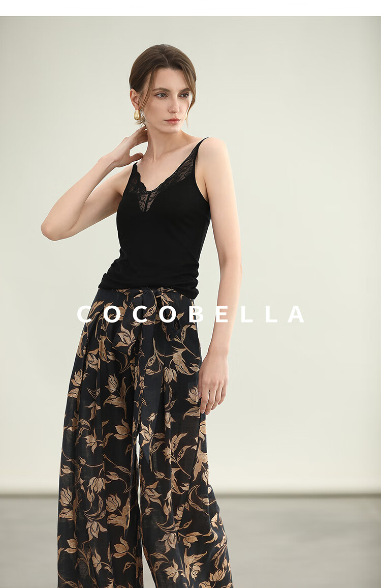 COCOBELLA莱赛尔度假风阔腿裤大女主绑带打褶休闲裤PA3075