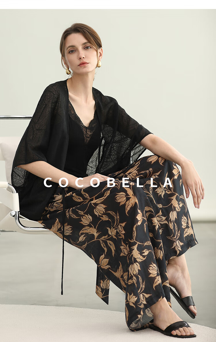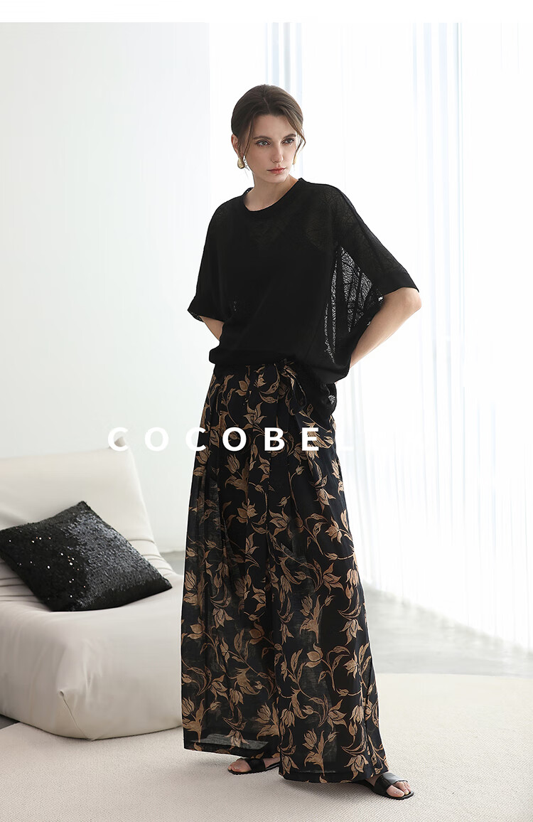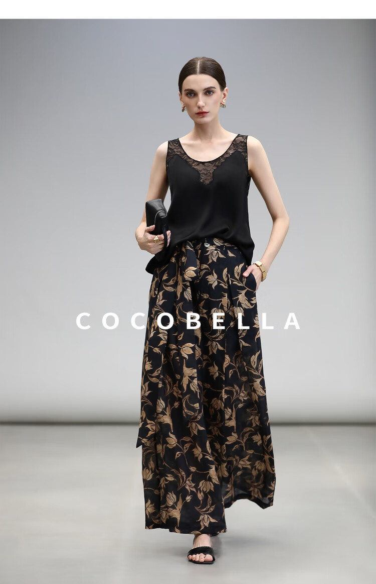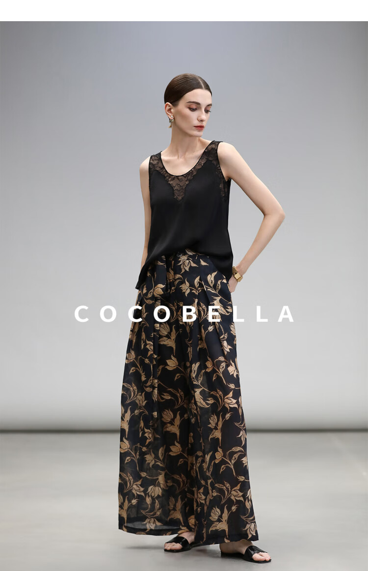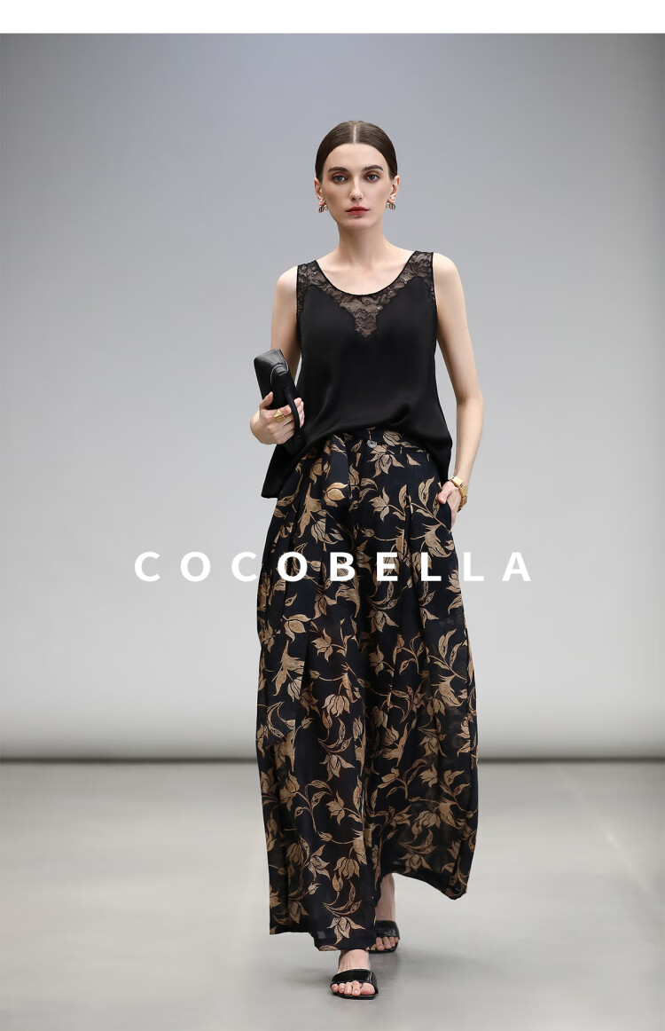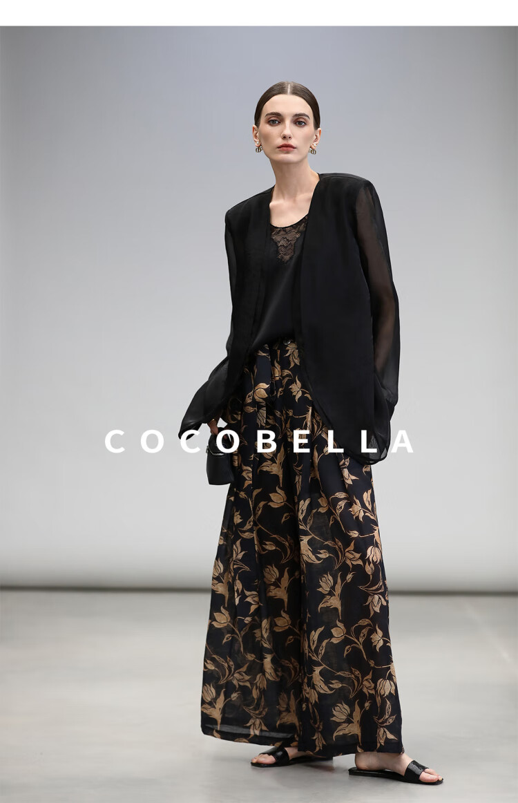 COCOBELLA莱赛尔度假风阔腿裤大女主绑带打褶休闲裤PA3075