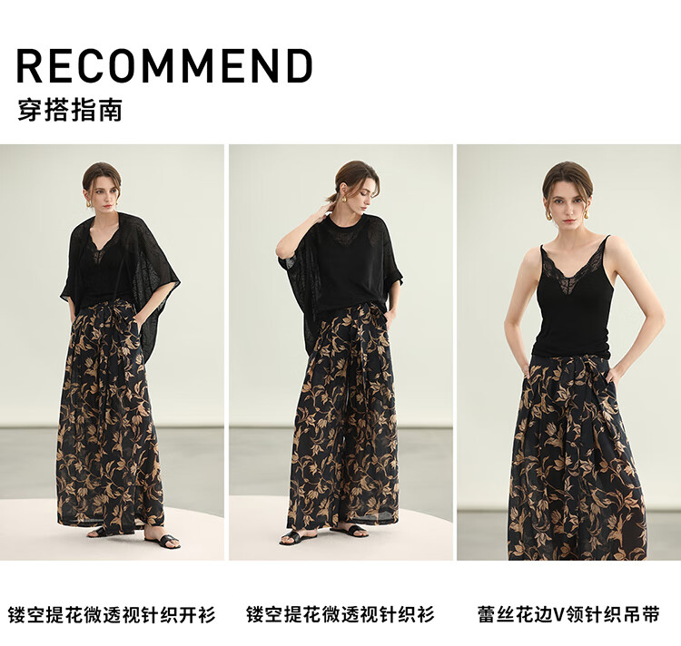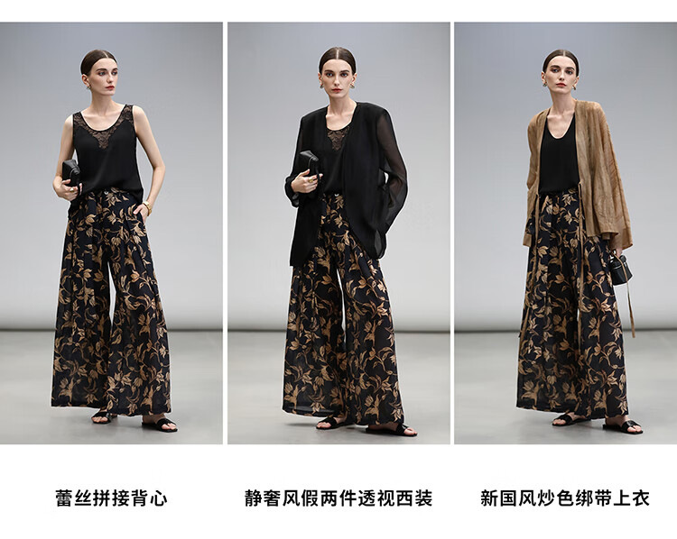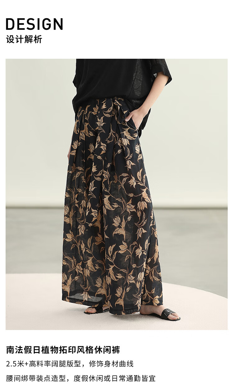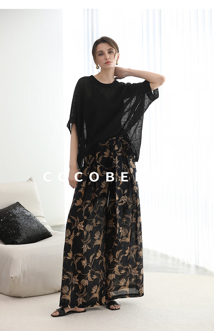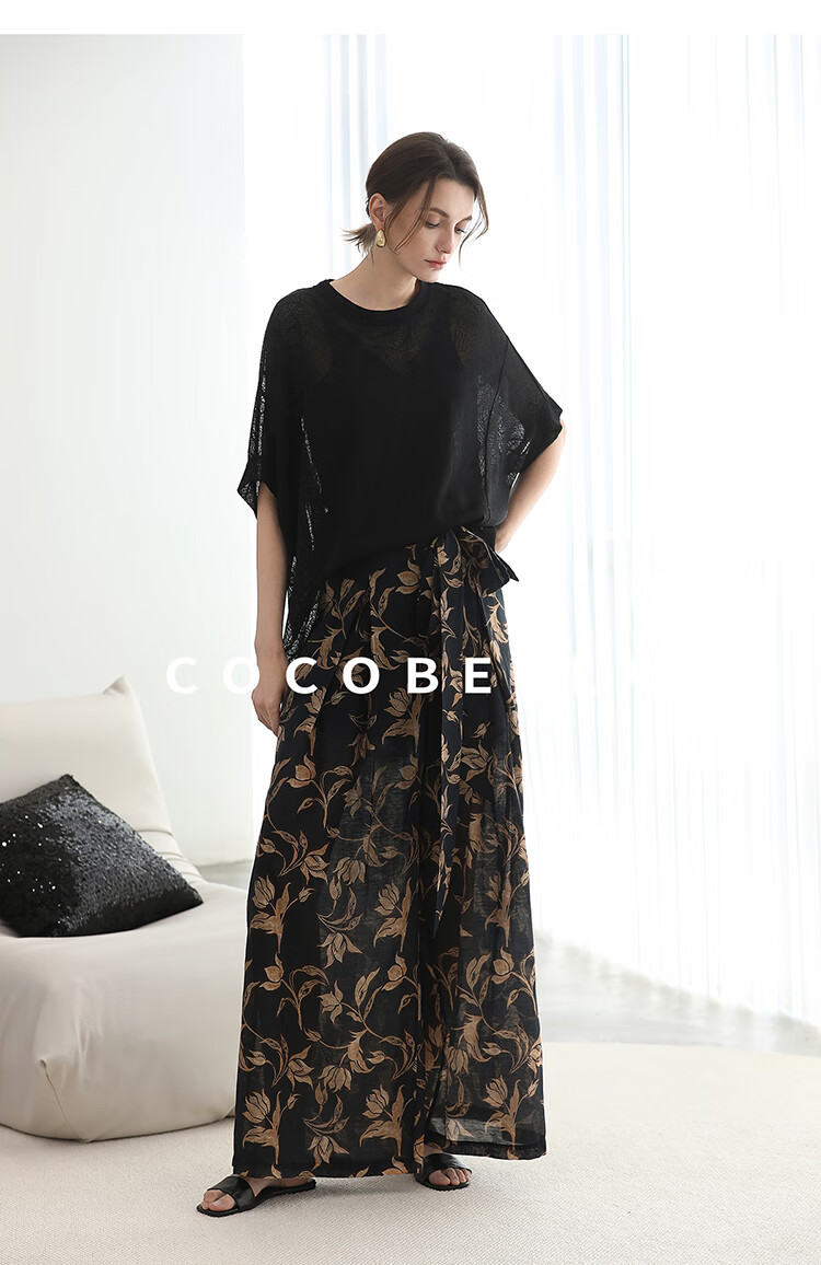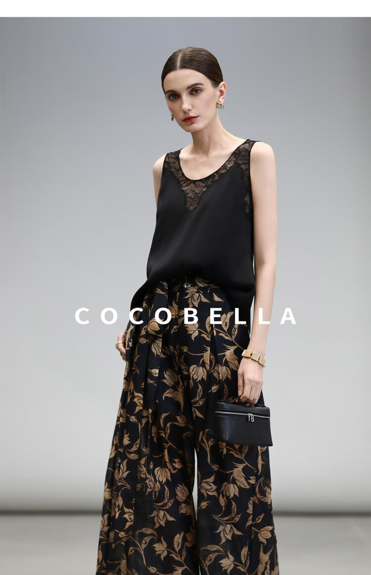 COCOBELLA莱赛尔度假风阔腿裤大女主绑带打褶休闲裤PA3075