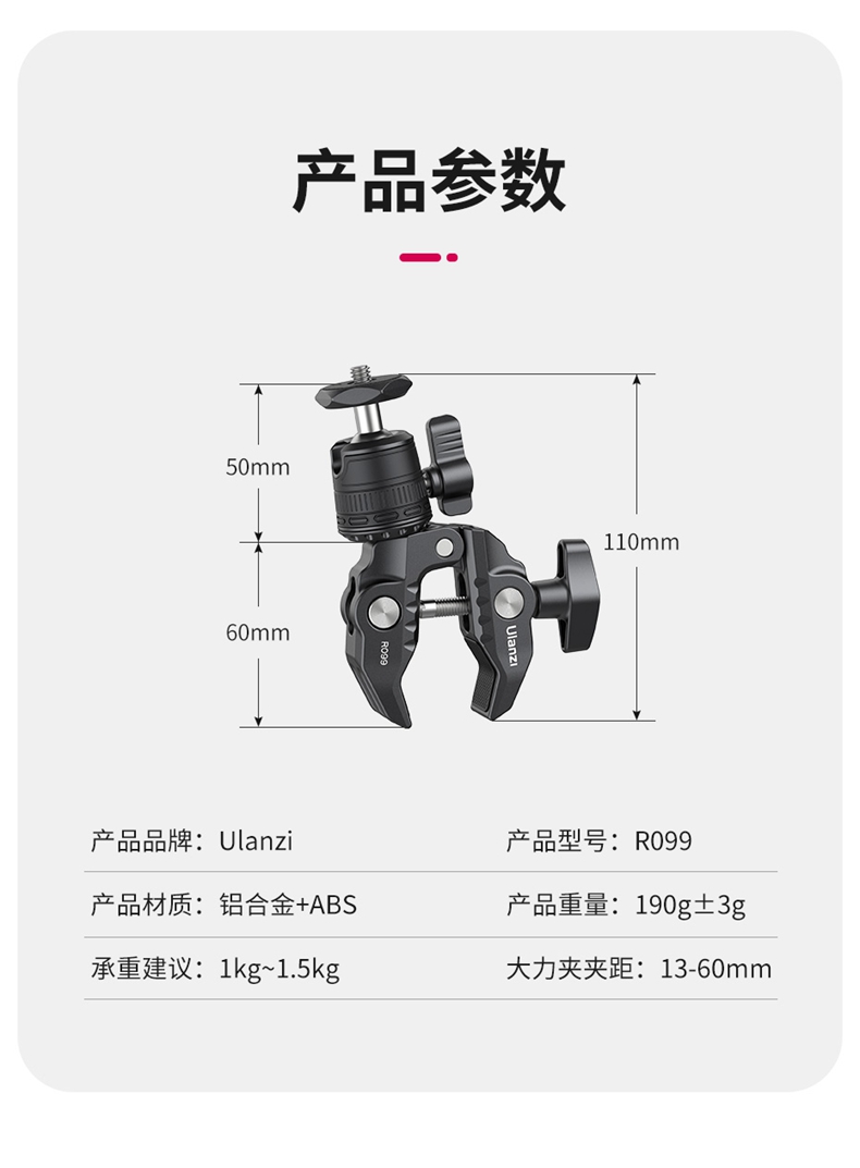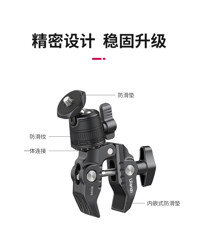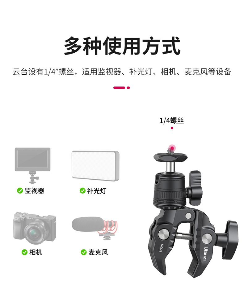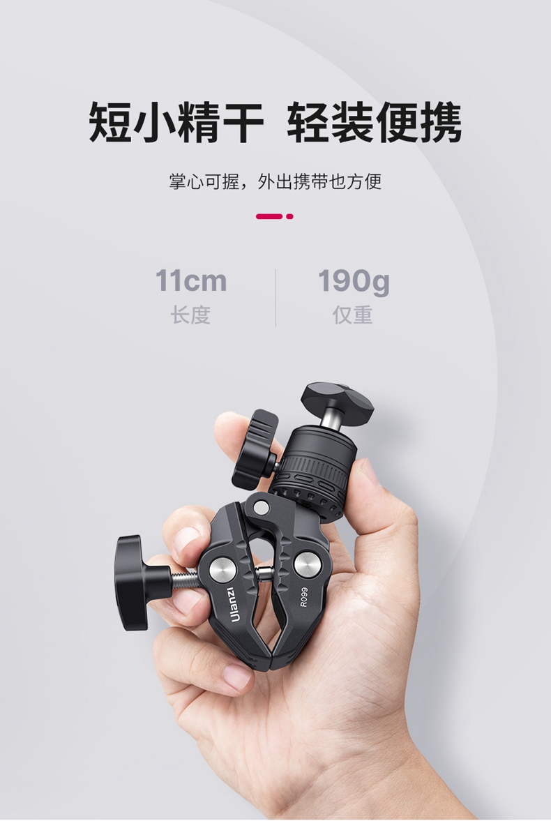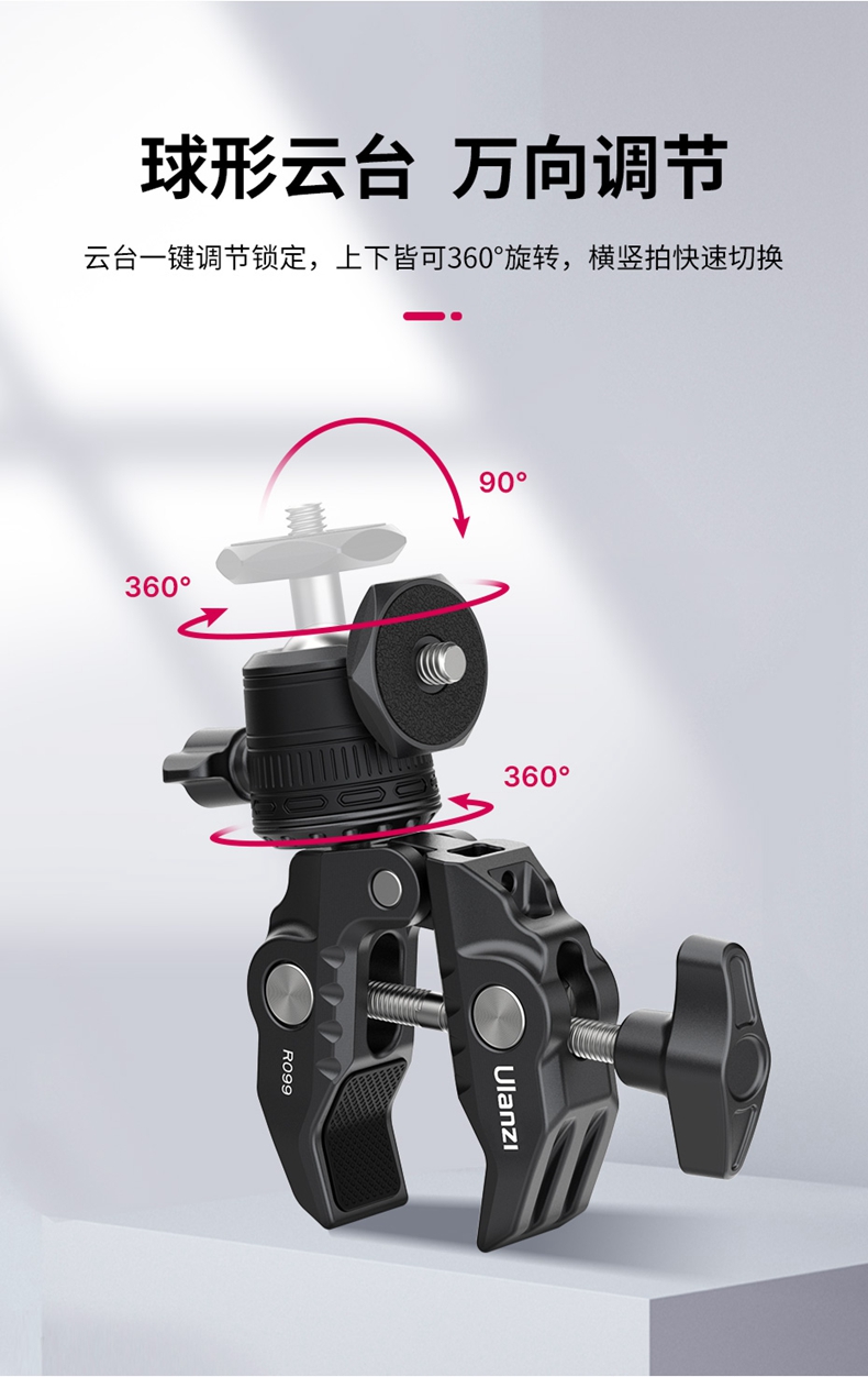 Ulanzi优篮子 R099金属小云台大力夹1/4螺孔C型手机微单运动相机补光灯通用固定脚架