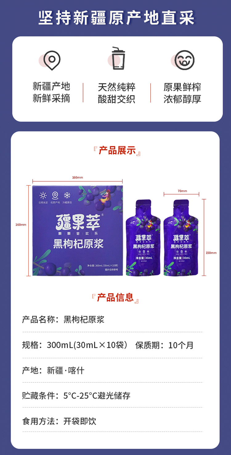 疆果萃 黑枸杞原浆 300ml (30ml*10袋)