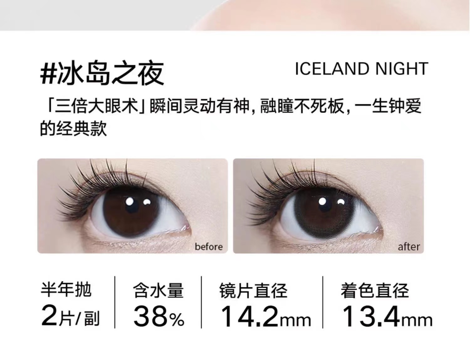 【冰岛之夜 1副】bekhan|半年抛|镜片直径14.2mm|着色直径13.4mm|自然无锁边黑色