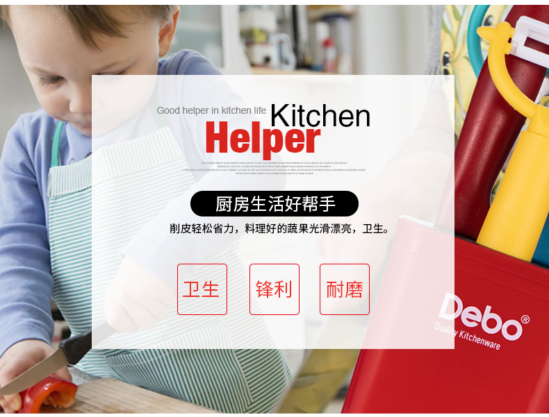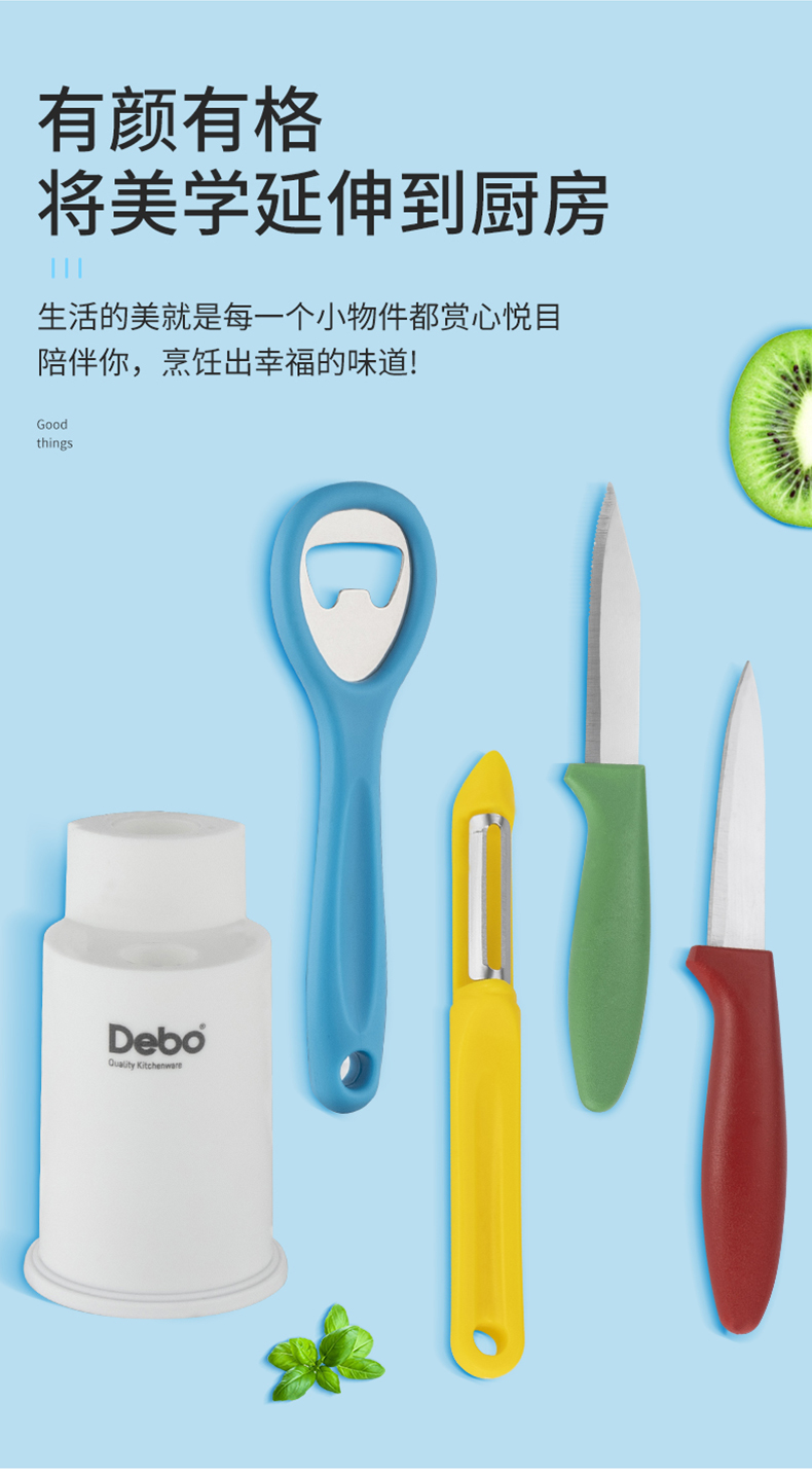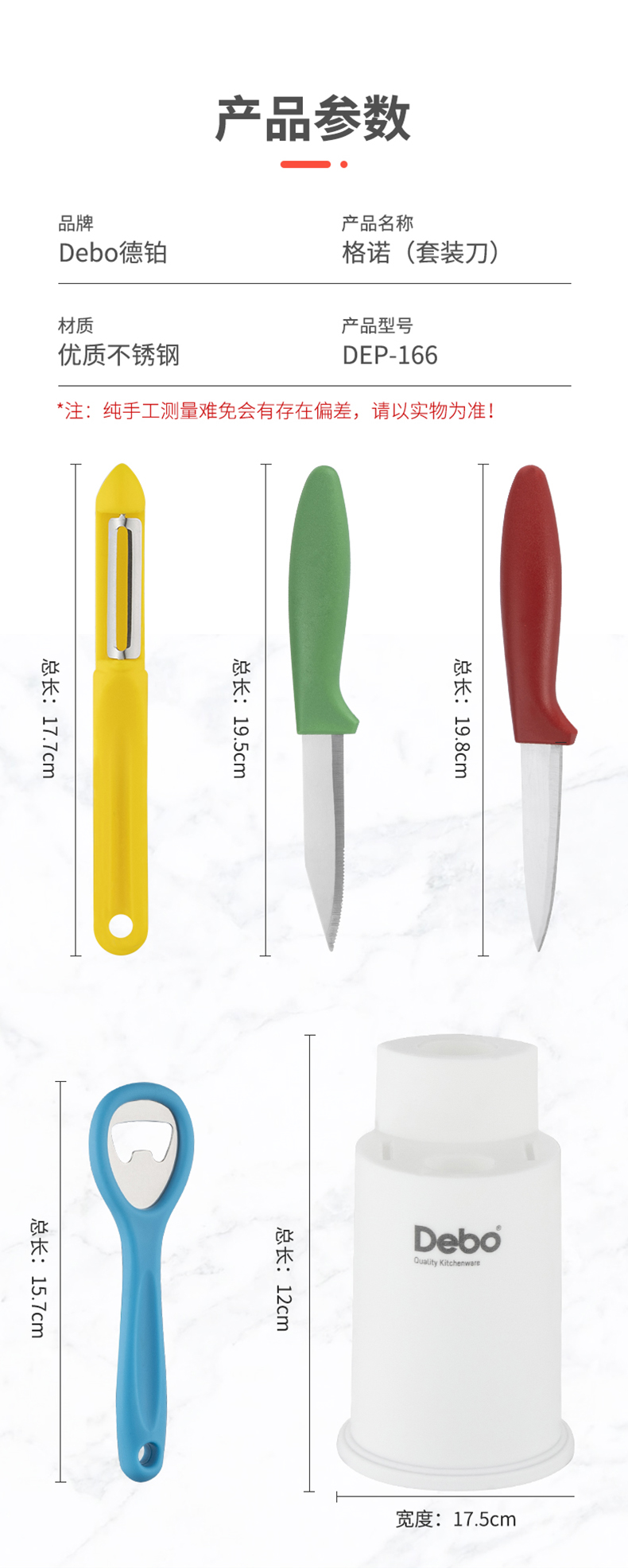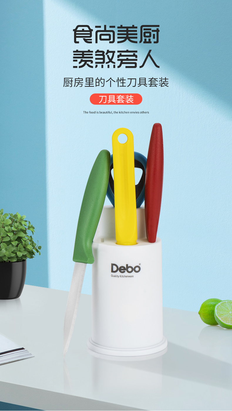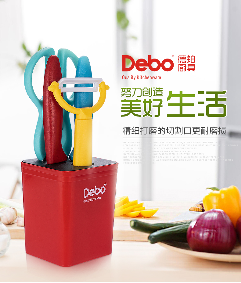 Debo德铂格诺厨刀5件套 瓶起 去皮器 水果刀 带齿刀 刀架 萨曼塔厨具5件套 水果刀 瓜刨 厨房剪 底座