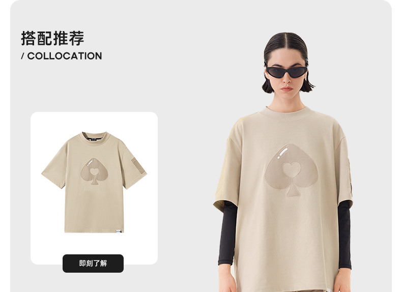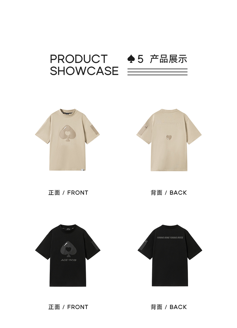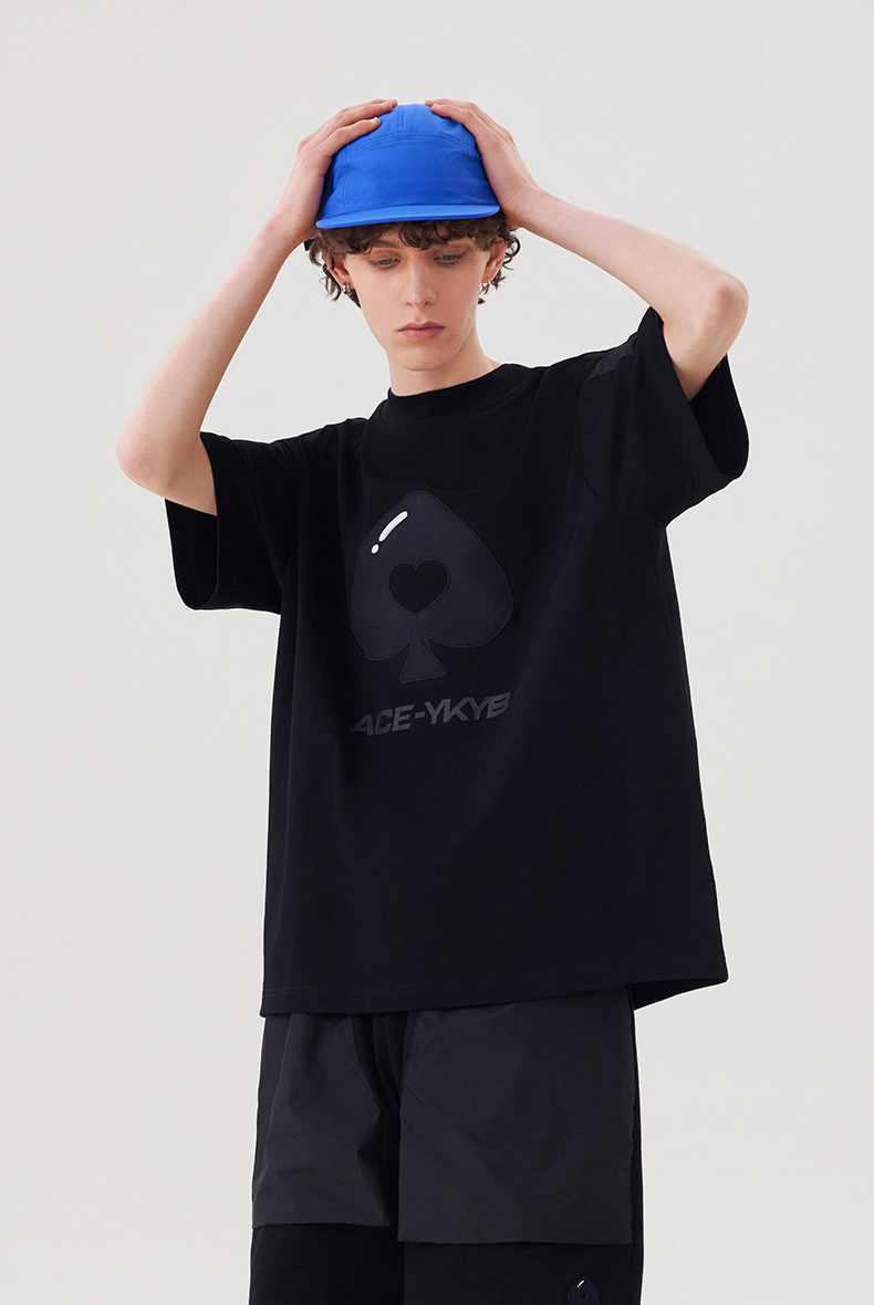 YKYB 23SS黑桃贴布字母短袖T恤爱心重磅廓形宽松休闲上衣潮流夏