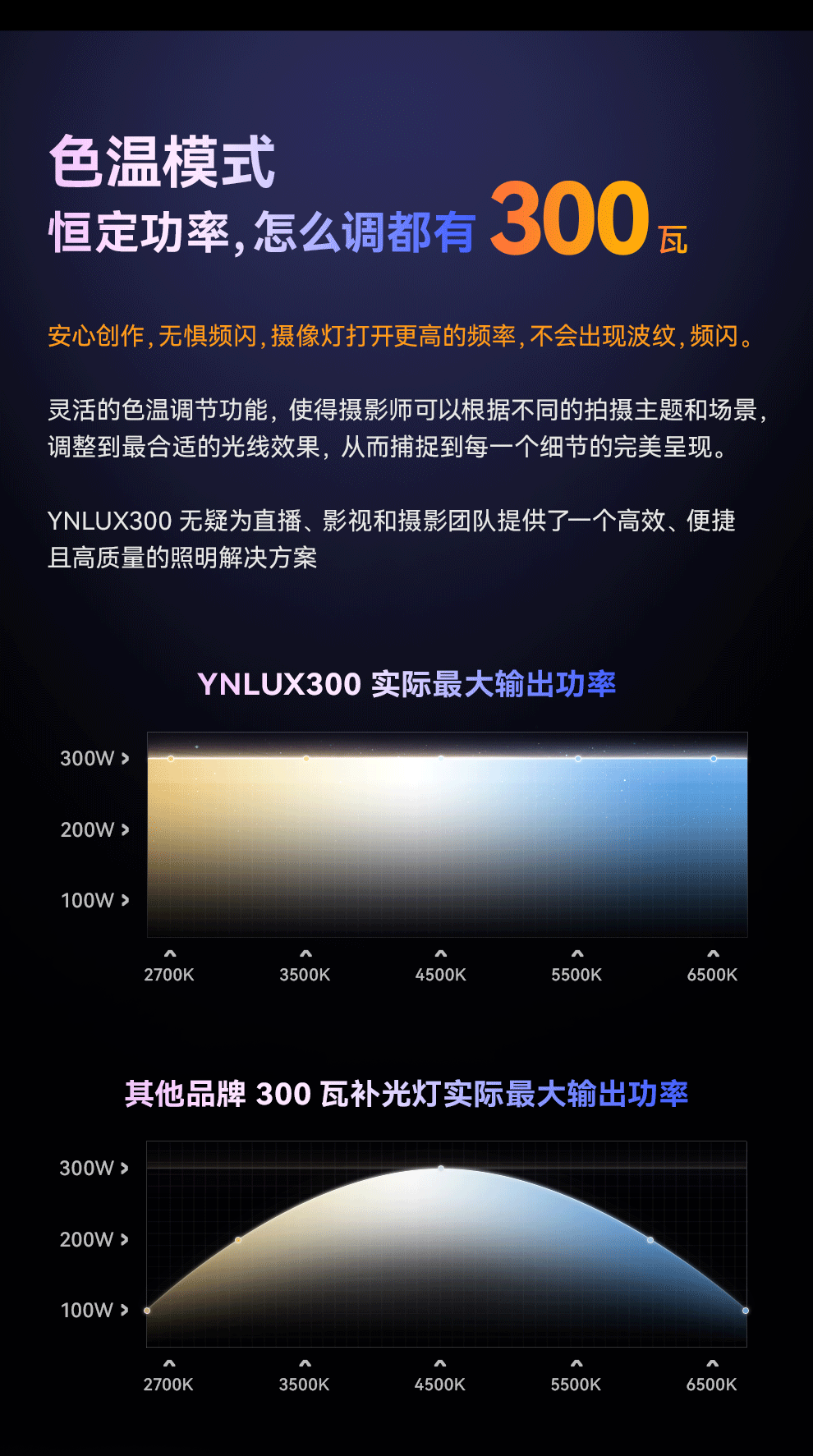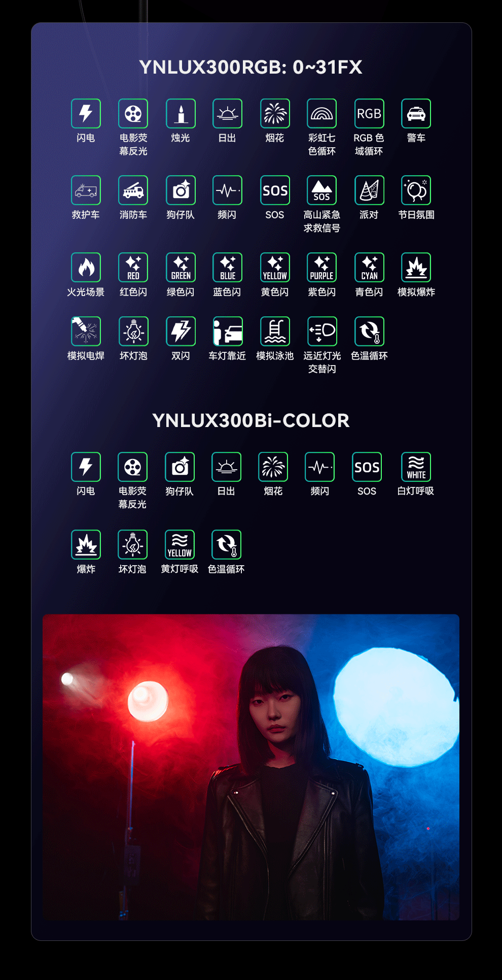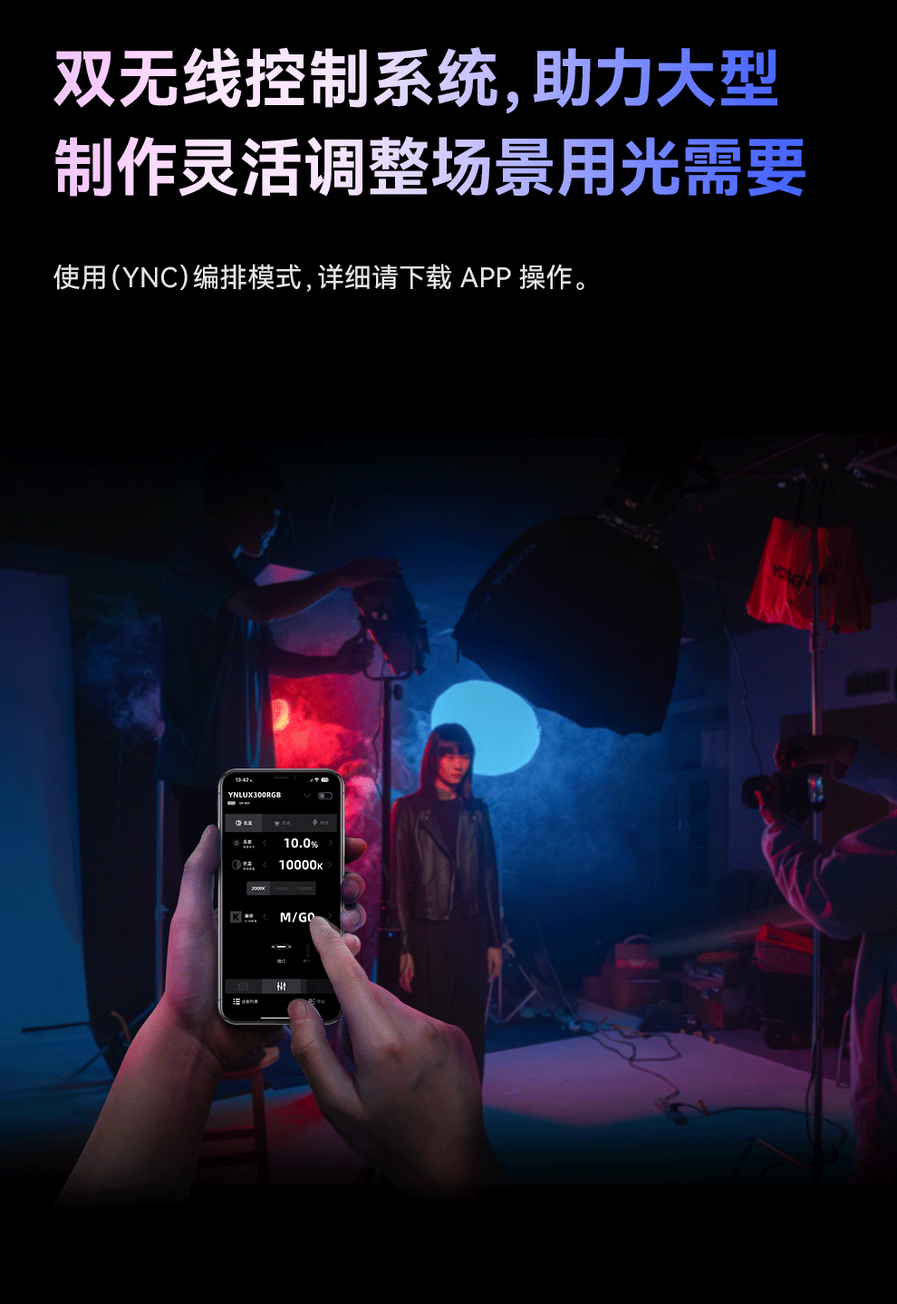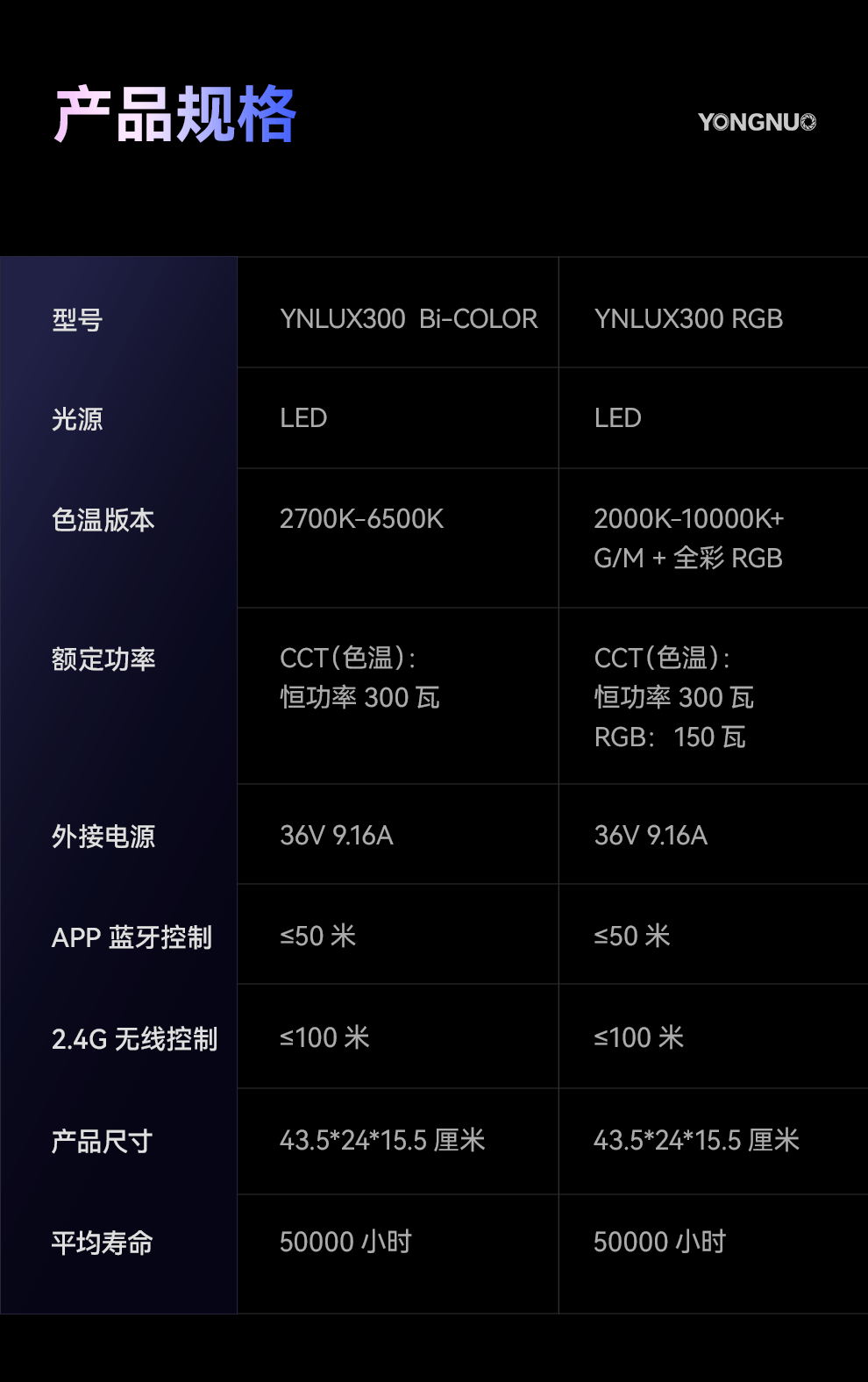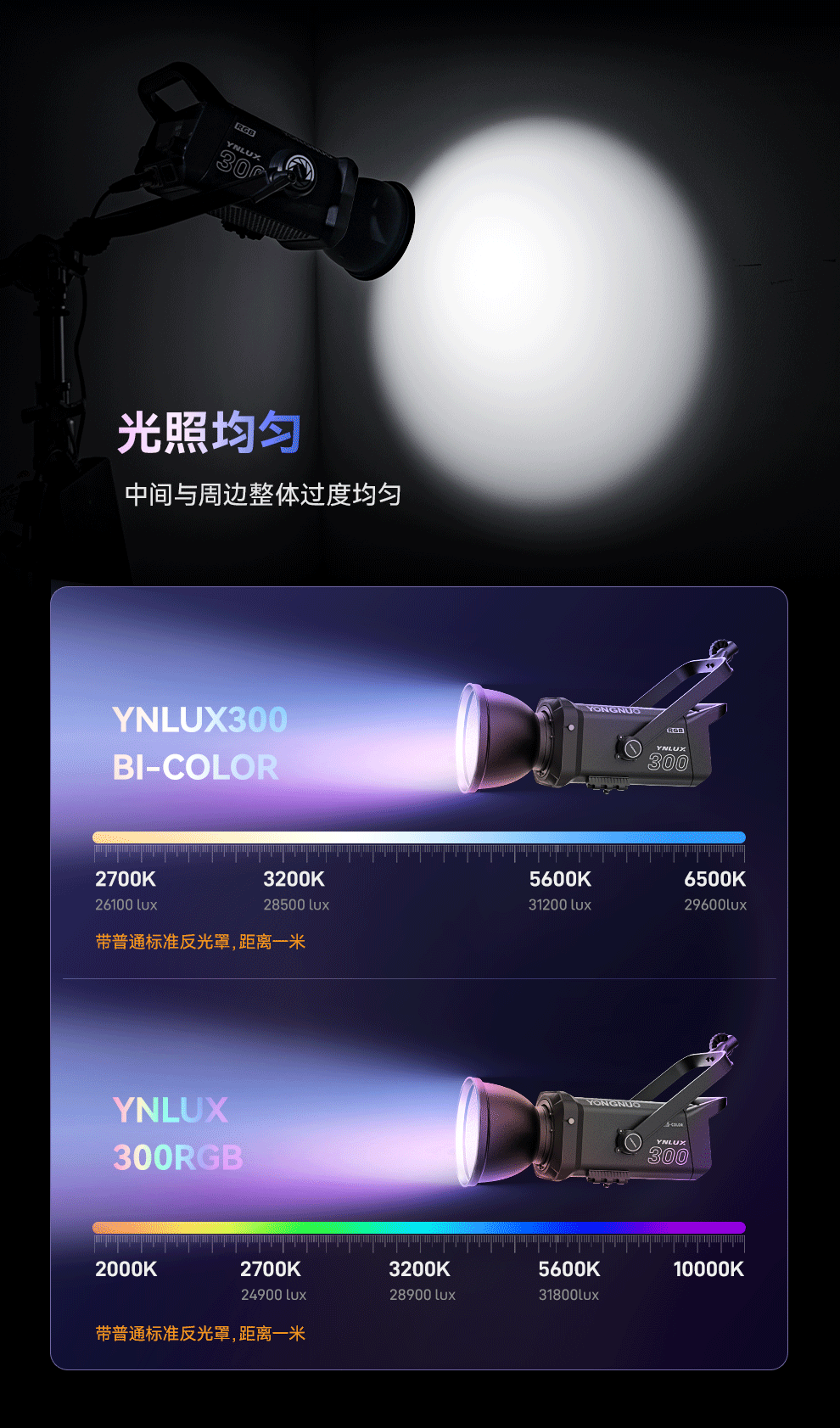 永诺 YNLUX300 双色温/RGB 大功率300W摄影灯 工作室首选用灯 | APP控制 | 摄像灯 | 影视灯 | 影棚灯