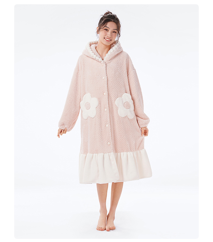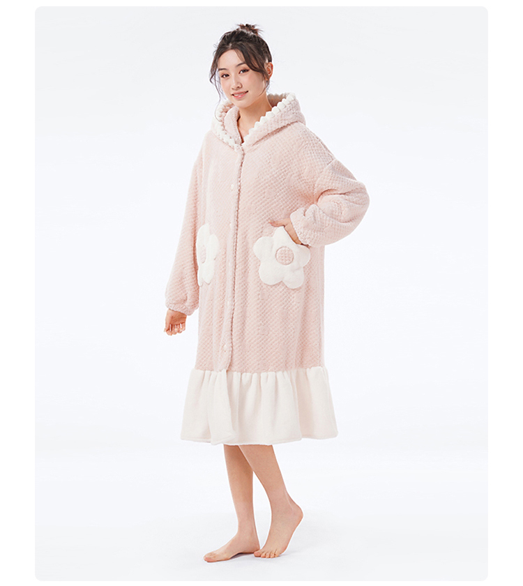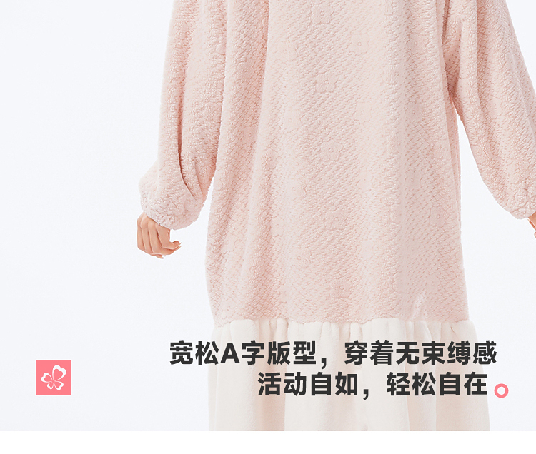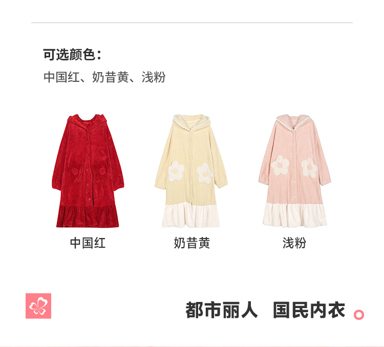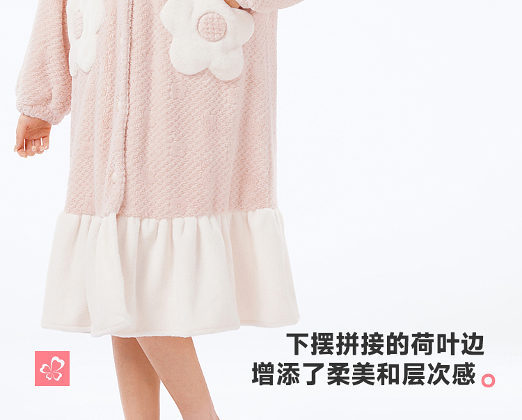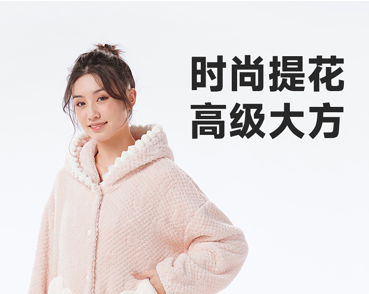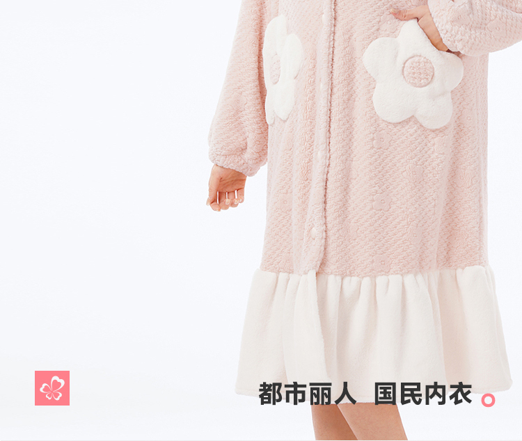 都市丽人睡衣女士法兰绒提花睡衣女士家居服法兰绒单件袍LHH7B4