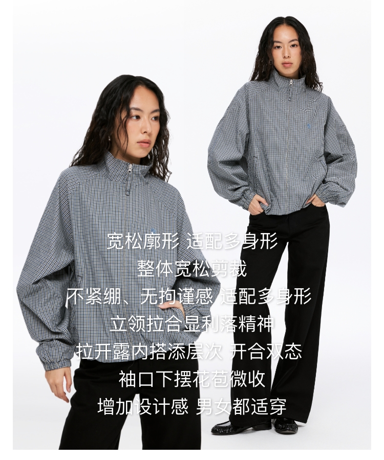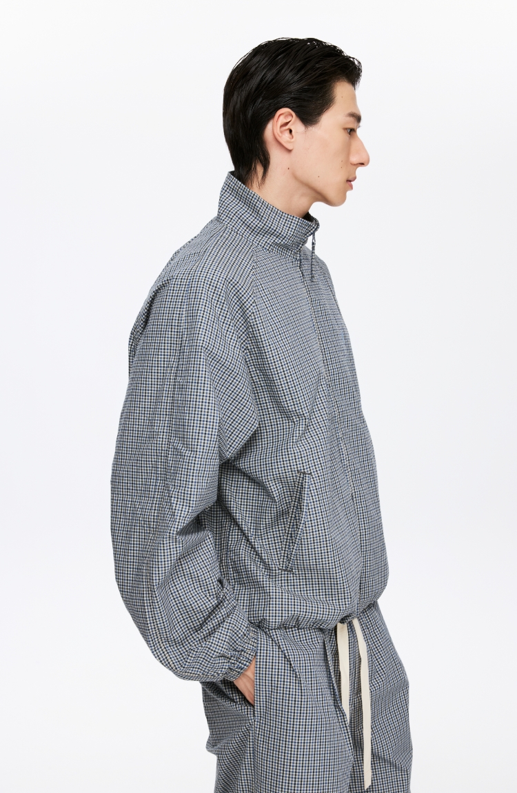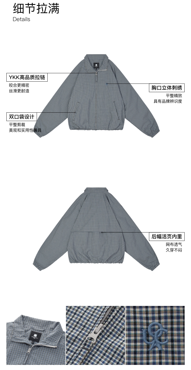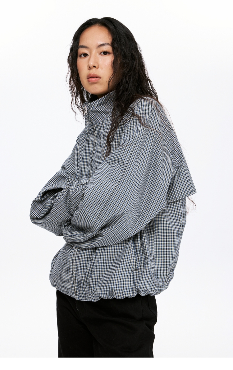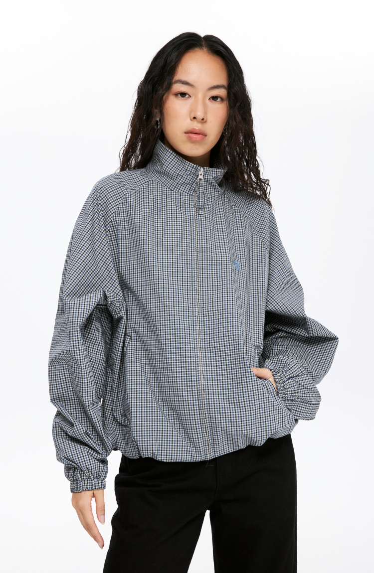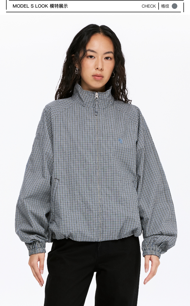 oneup格子花苞拉链夹克(男女同款)