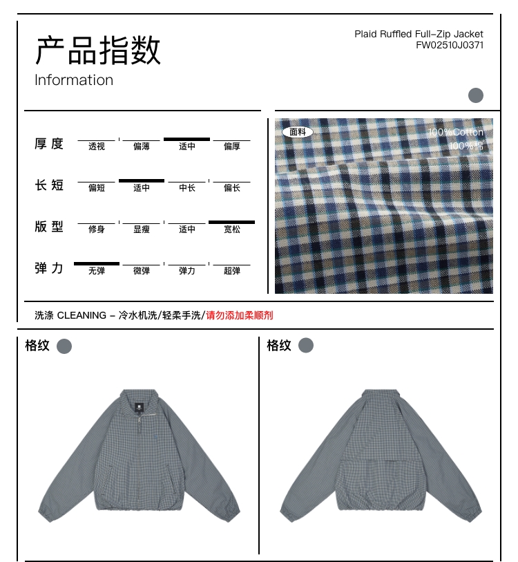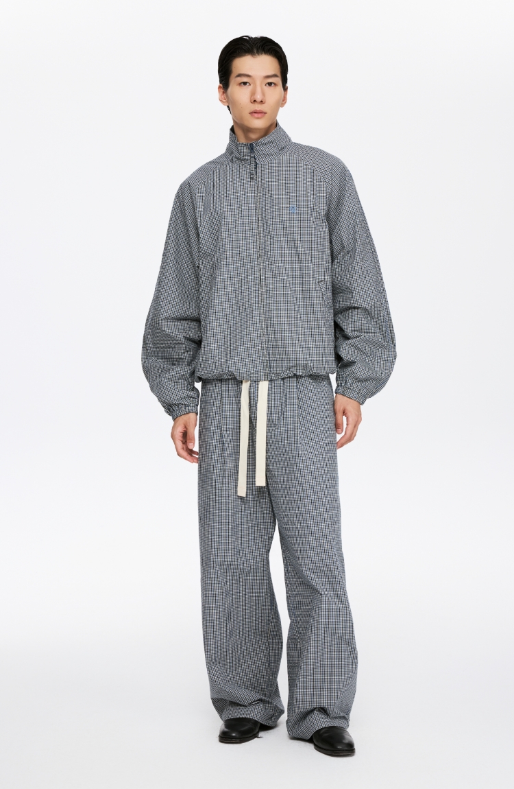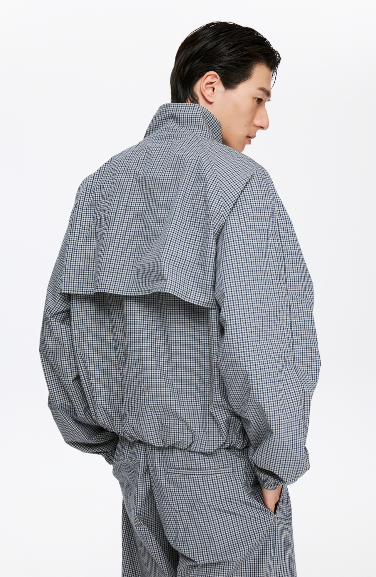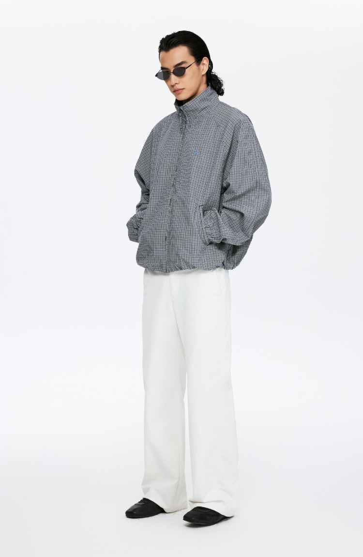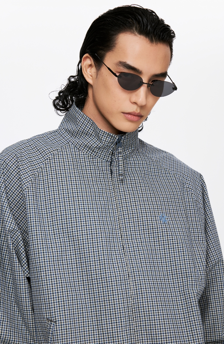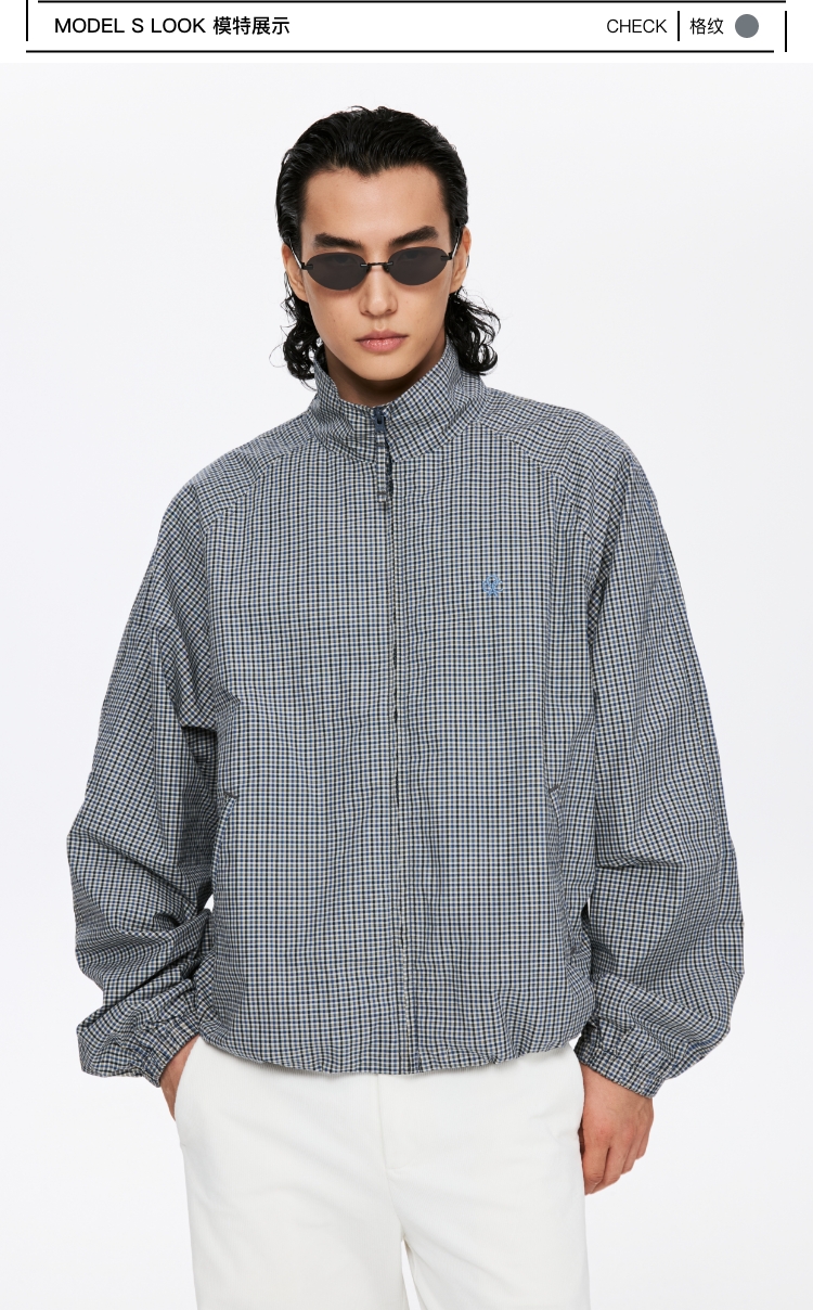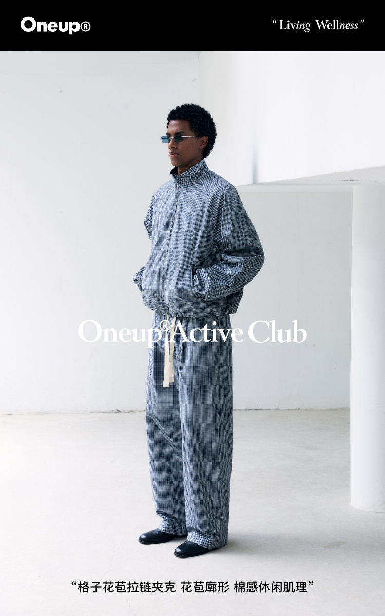 oneup格子花苞拉链夹克(男女同款)