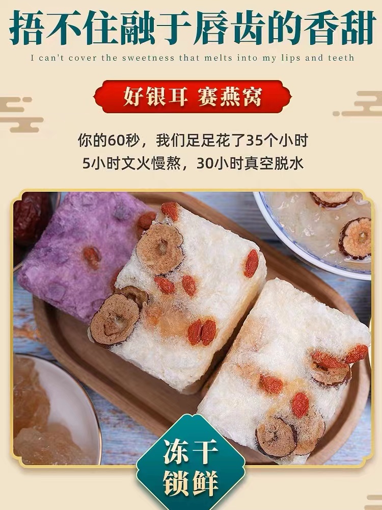 三朵银花 冻干银耳羹冲泡即食速食早餐红枣枸杞莲子羹免煮银耳汤