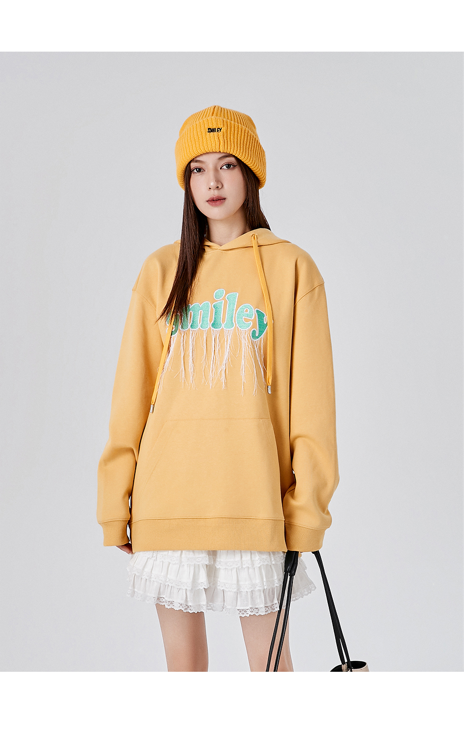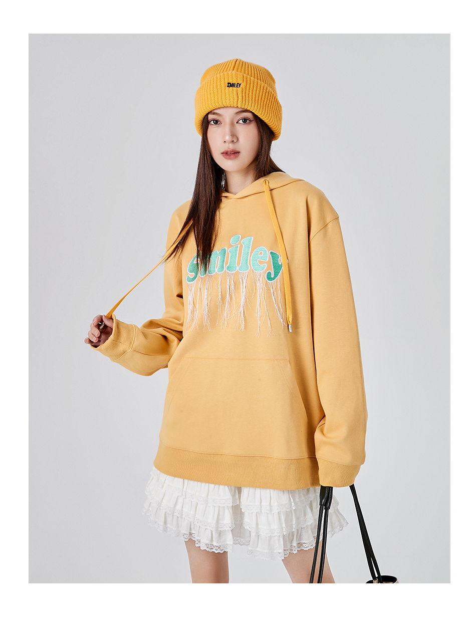 [韩国潮牌] SMILEY 正品微笑秋冬新品字母毛巾刺绣流苏笑脸标连帽卫衣511