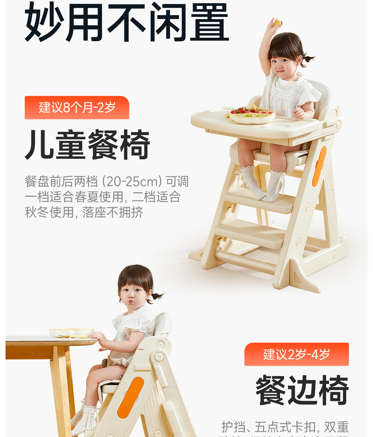 【冬日暖佣】曼龙mloong餐椅宝宝多功能成长椅可升降吃饭学习椅